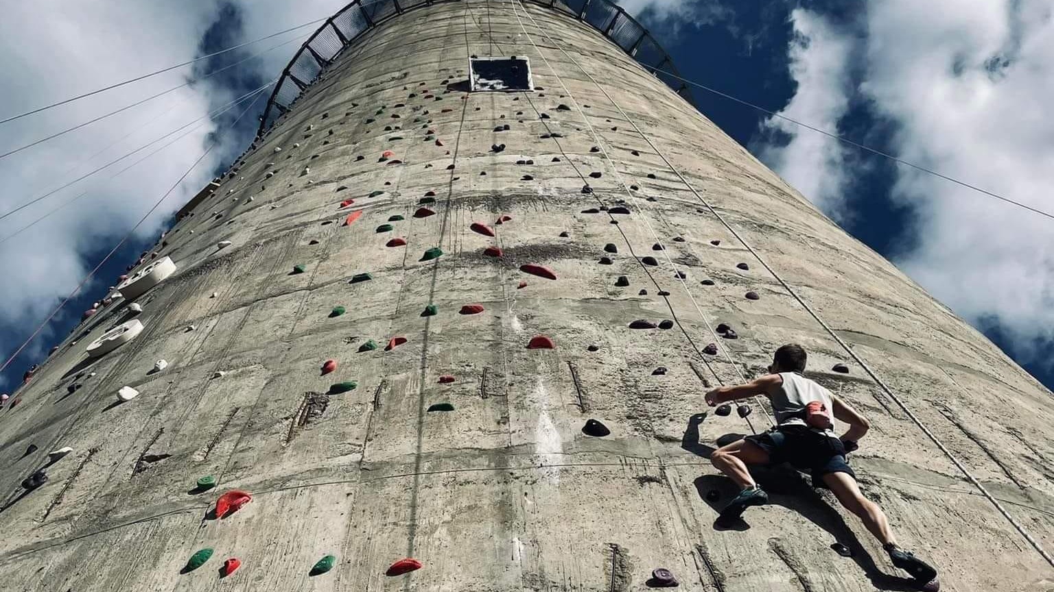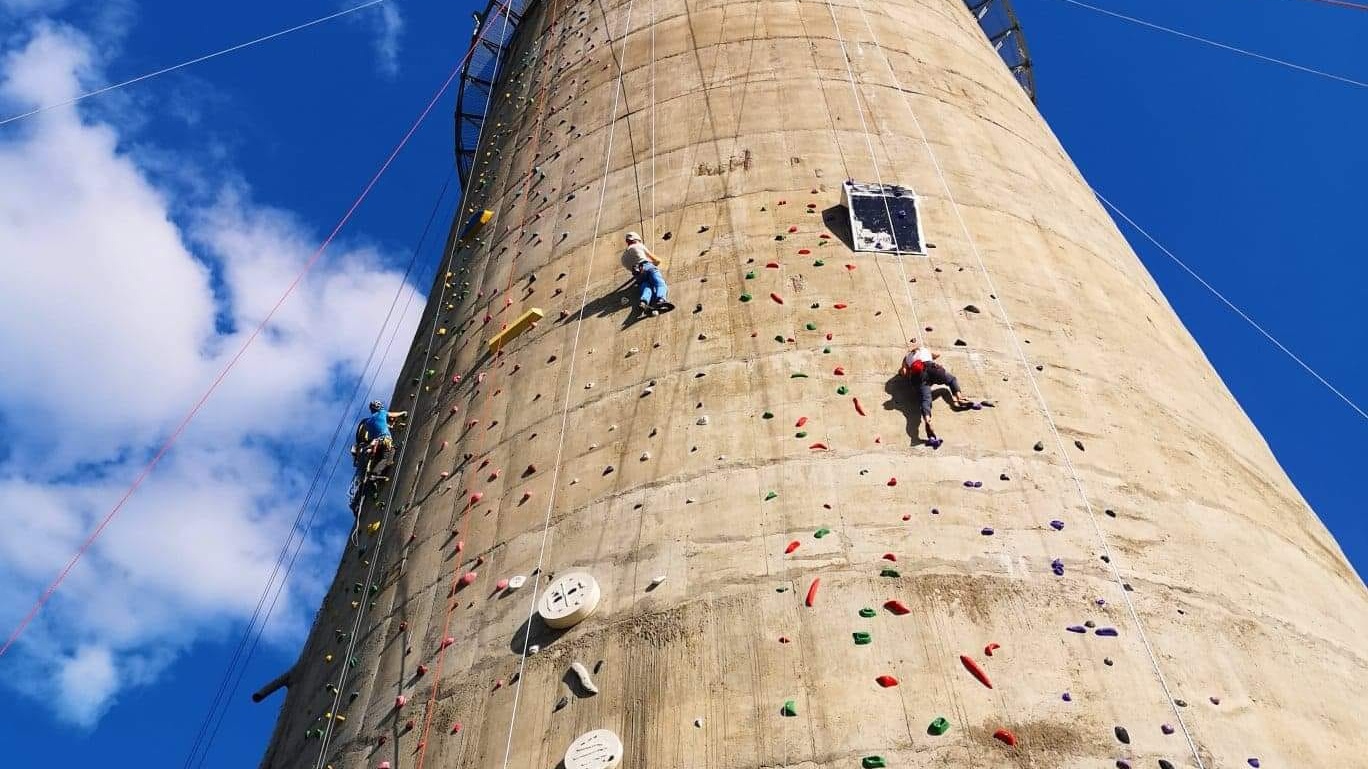 Największa ściana wspinaczkowa na świecie powstaje na kominie byłych zakładów Wiskord w Szczecinie. Będzie miała 252 metrów wysokości, obecnie powstało już 40 metrów.