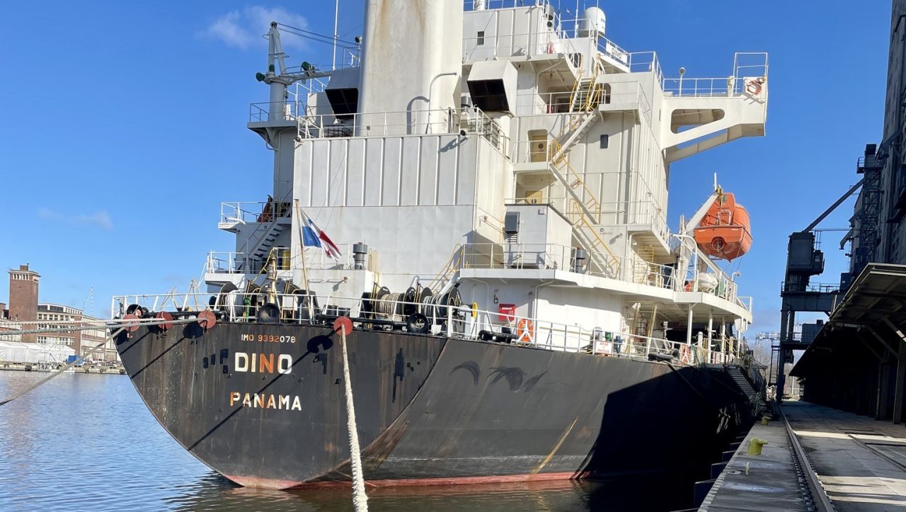 Jednostka M/v Dino to masowiec zbudowany w 2009 roku i obecnie pływający pod banderą Panamy. Masowiec załadował na nabrzeżu zbożowym blisko 30 tys. ton pszenicy i wyruszył do szwedzkiego portu Göteborg.