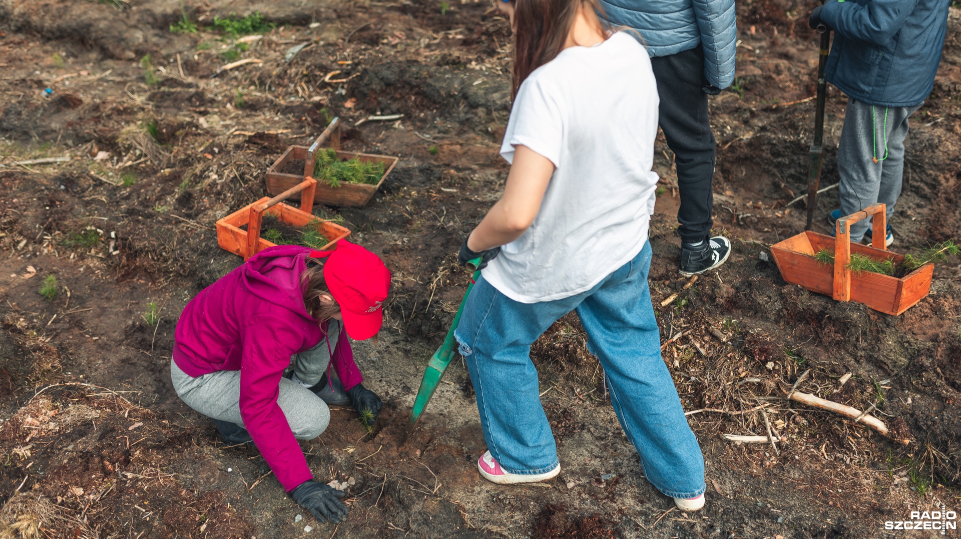 Dzieci sadziły las używając kosturów, sadzonki miały rok. - Najpierw trzeba zrobić dołek. Potem zasadzić i zaklepać. Lubię chodzić do lasu, jest tak fajnie i naturalnie.