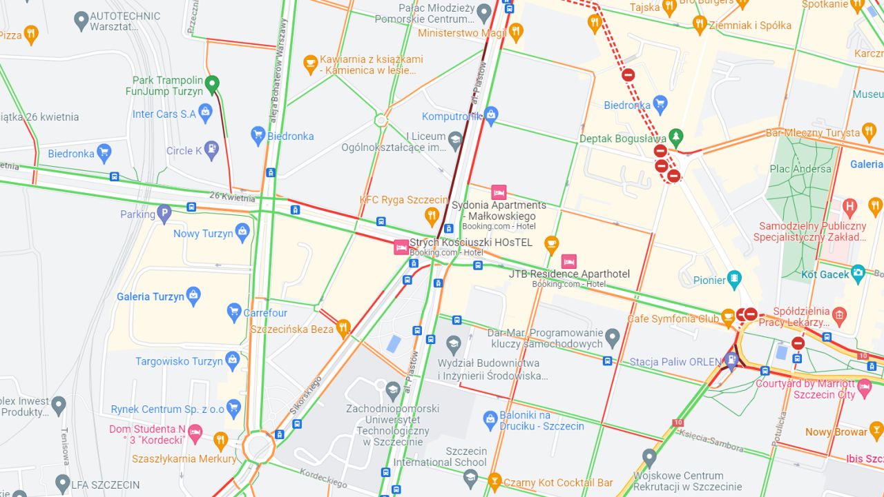 Częściowo zablokowany jest plac Kościuszki w Szczecinie.