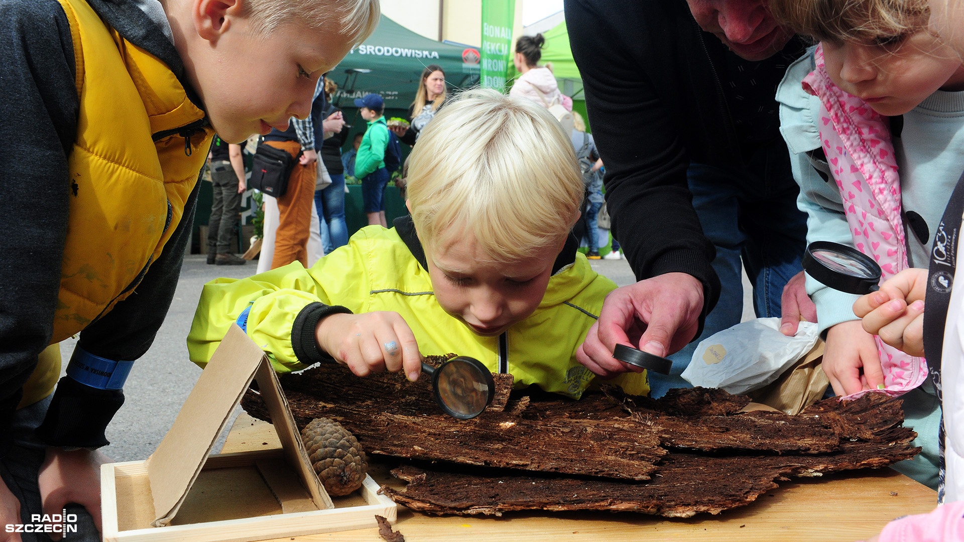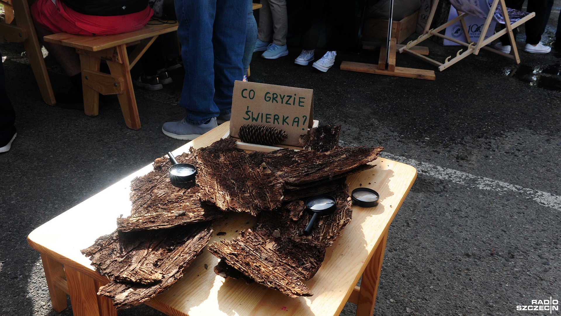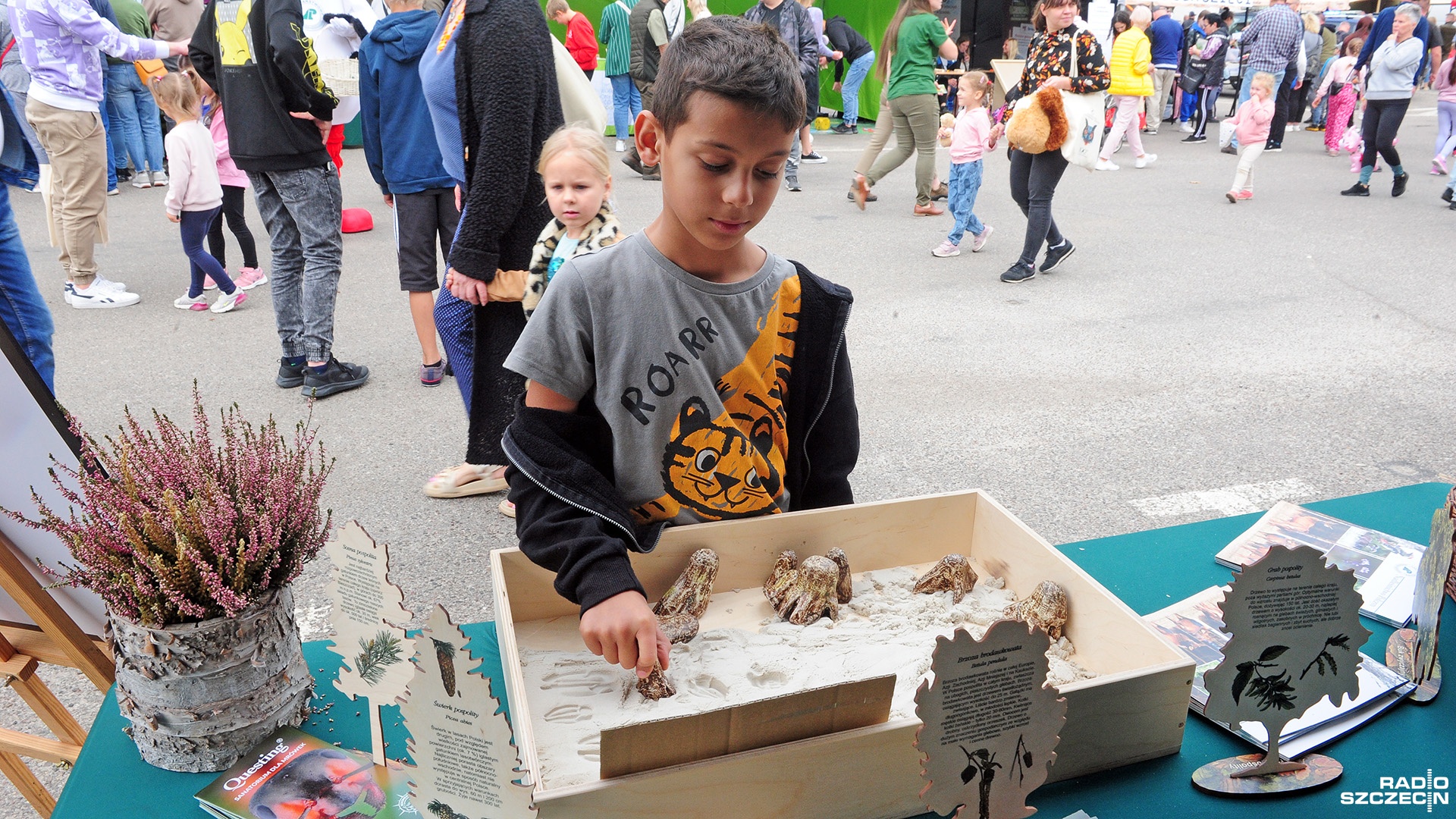 - To kawałki kory świerkowej. W korze możemy odnaleźć ślady żerowania kornika drukarza - instruowała najmłodszych Natalia Barszczewska z Nadleśnictwa Połczyn.