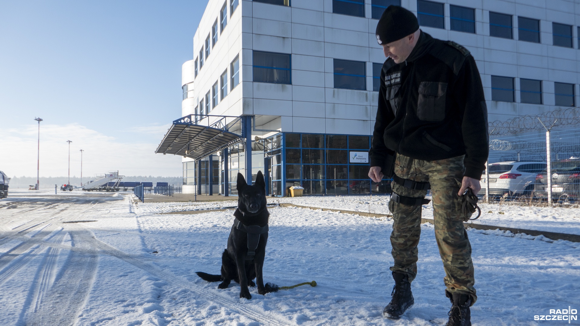 - Drago, czyli owczarek niemiecki, pracuje m.in. na lotnisku w Goleniowie, gdzie dziś odbyło się spotkanie. Pies tropi narkotyki - mówi jego przewodnik Mariusz Dygas. - Praca przewodnika psa jest bardzo ciekawa. Pies, poprzez zabawę, wykonuje swoje obowiązki, zadania służbowe. Jest moim partnerem, razem się uzupełniamy. Wykonujemy swoje zadania, obecnie na lotnisku, a tak naprawdę w zależności od tego, kto nas potrzebuje i jakie mamy postawione zadania, tam się znajdujemy i tam pełnimy służbę.