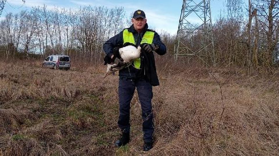 Łabędzia zaplątanego w drut kolczasty uratowali szczecińscy strażnicy miejscy. Akcję przeprowadzili w piątek rano na ul. Szosa Polska w Szczecinie.