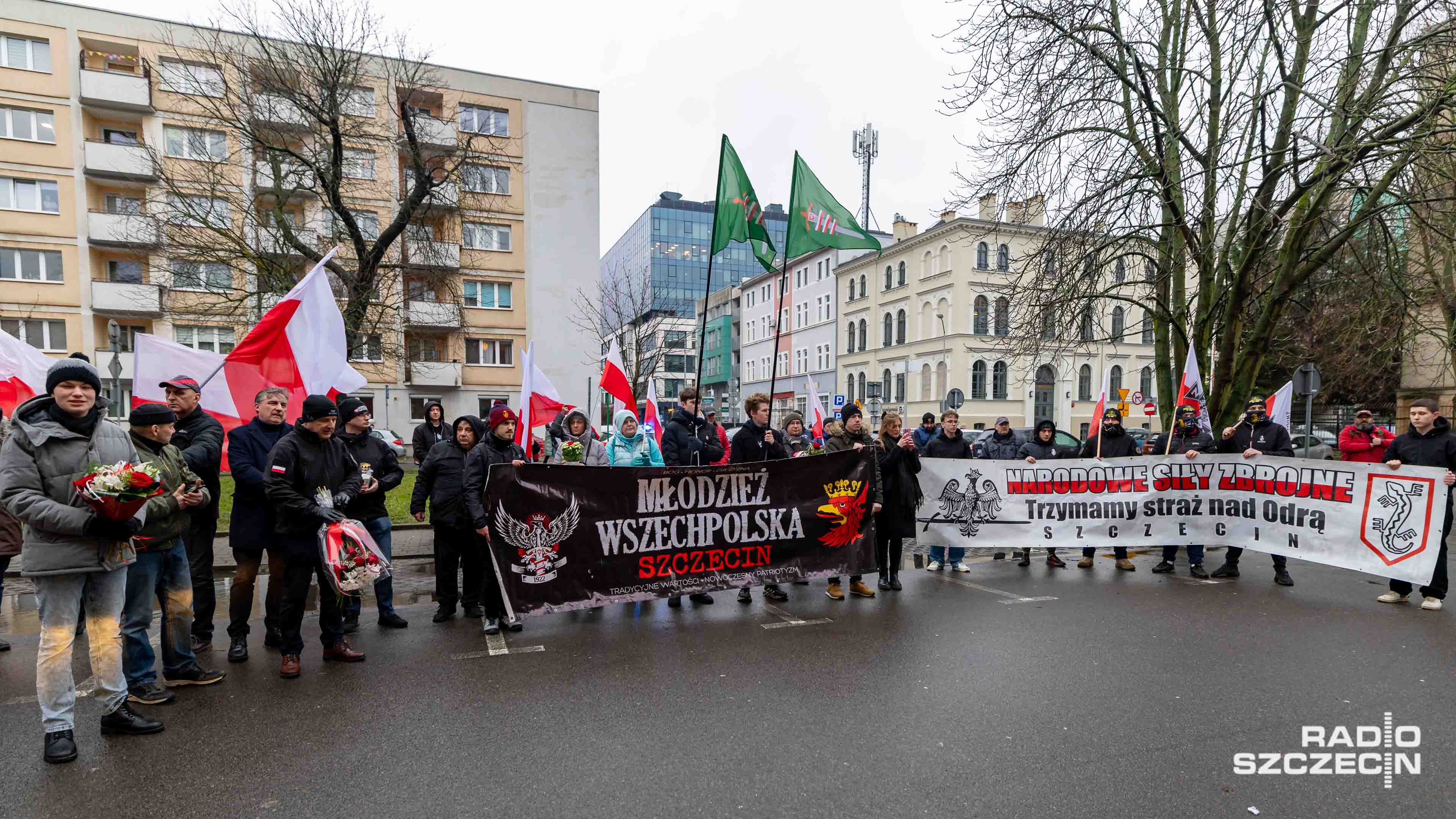 - Jest tom Marsz Żołnierzy Wyklętych w Szczecinie i przyszliśmy tutaj jako Młodzież Wszechpolska, związek żołnierzy Narodowych Sił Zbrojnych, mieszkańcy Szczecina, żeby upamiętnić Żołnierzy Wyklętych, czyli żołnierzy podziemia antykomunistycznego, którzy po zakończeniu wojny wciąż walczyli o polską niepodległość - tłumaczy Bartman.