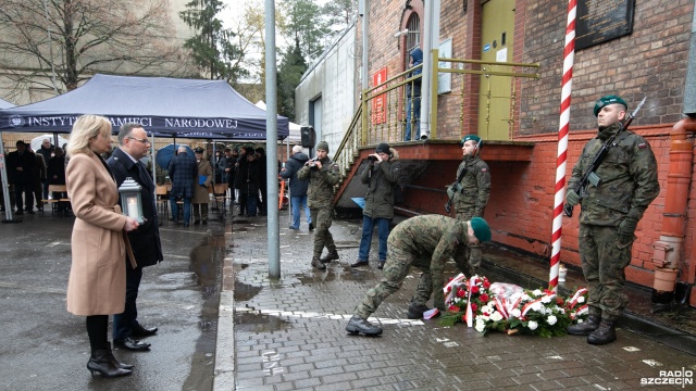 Dyrektor Instytutu Pamięci Narodowej Krzysztof Męciński podczas porannych obchodów złożył kwiaty pod tablicą upamiętniającą osoby przetrzymywane i zamordowane w więzieniu przy ulicy Kaszubskiej w latach 1945-56.