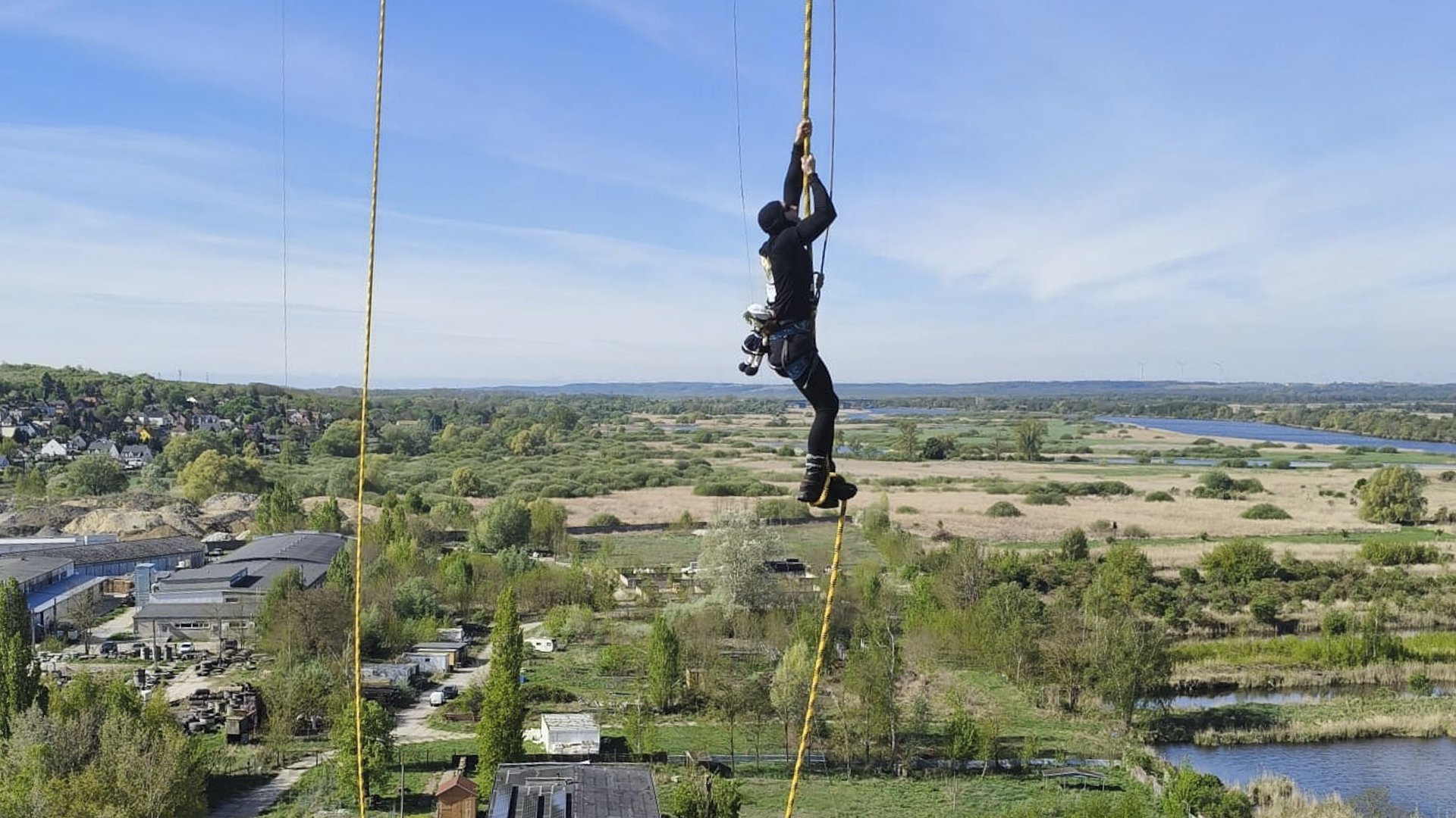 Rekord świata w wspinaczce na linie pobity. Maciej Ćwierlikowski osiągnął wysokość około 130 metrów po linie zwisającej z komina w Żydowcach.