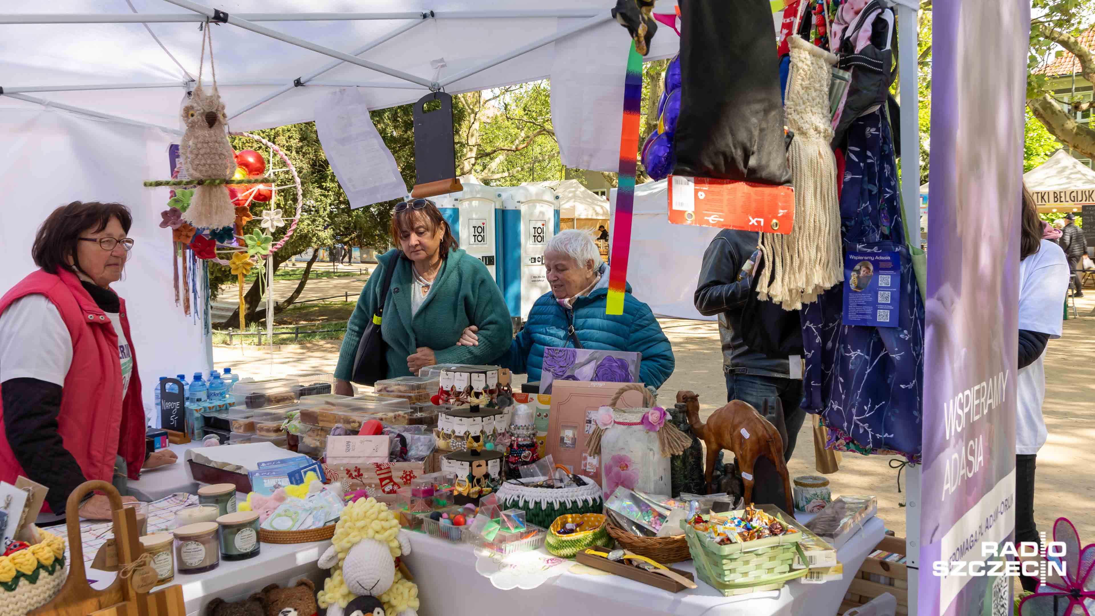 - Zapraszamy serdecznie tutaj do nas, żeby wspierać Adasia, w tej ciężkiej walce z chorobą. Co my tutaj mamy? W zasadzie wszystko. Ciasta, domowe pierogi, piękne rękodzieła. Dziewczyny siedzą i robią je nocami, żeby Adasiowi pomóc i żeby jak najwięcej uzbierać dla niego pieniędzy na leczenie - dodaje Barbara Karwowska-Dubiel.