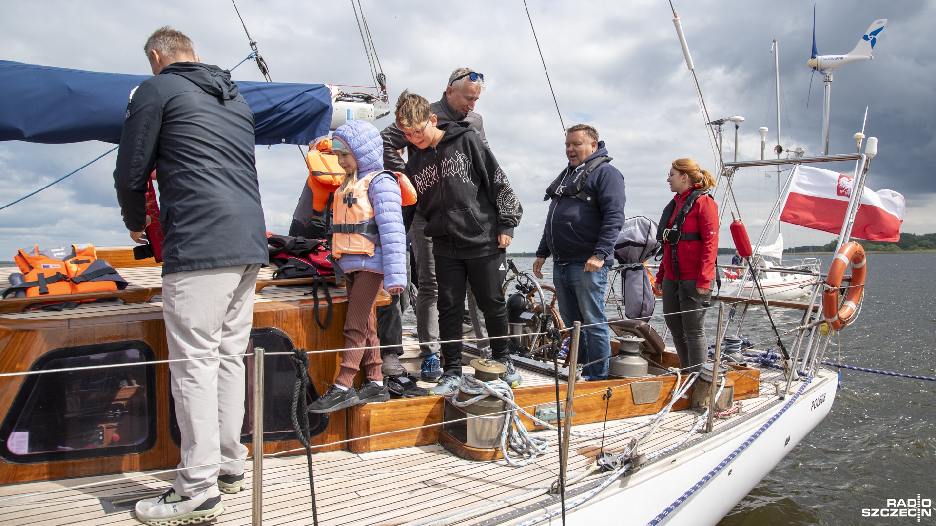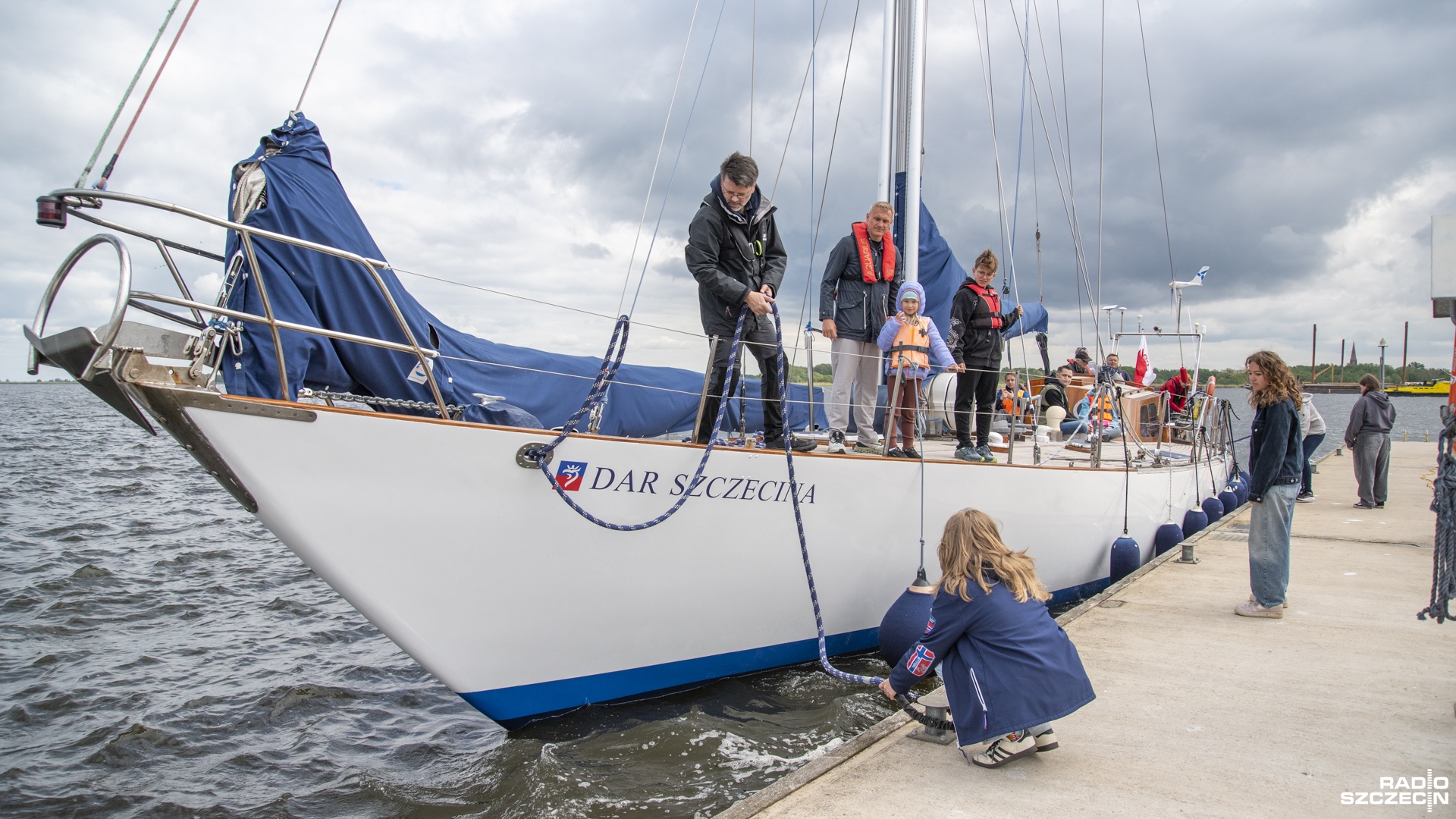 - Dla takich osób, które z żeglarstwem jeszcze wiele nie mają do czynienia robimy króciutkie rejsy po okolicznych wodach. Dzieci, które się pojawiają, stają za sterem, interesują się wszystkim - opowiadał kapitan jachtu Dar Szczecina Wojciech Maleika.