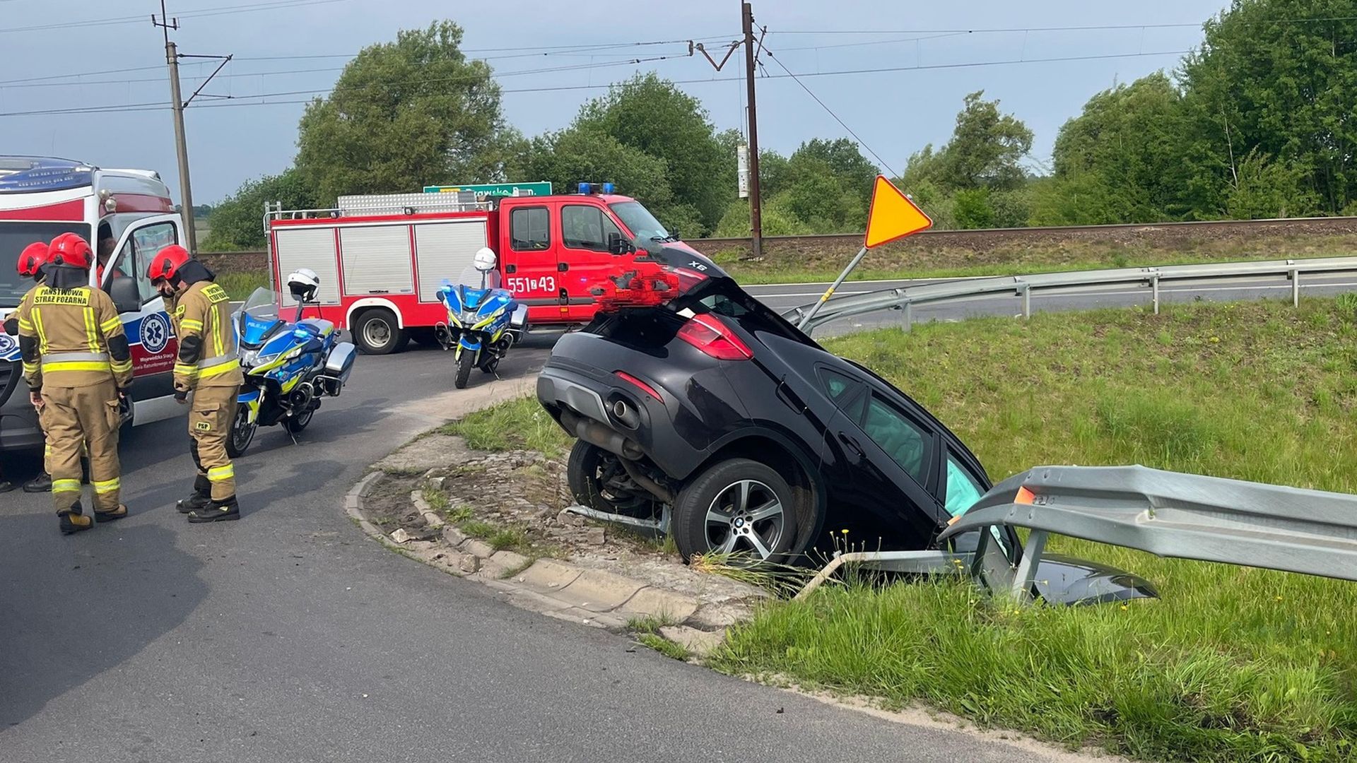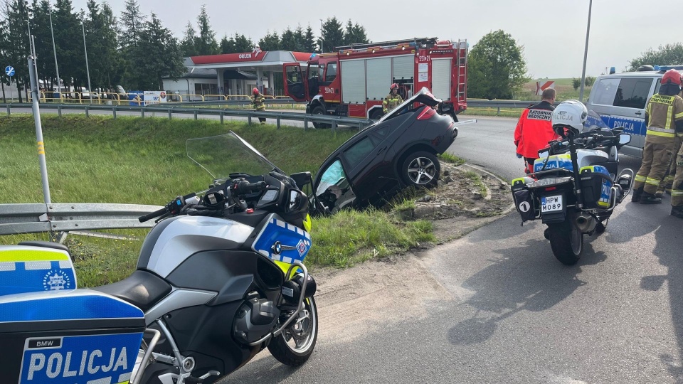 18-latek za kierownicą BMW zjechał z drogi i zawisł na skarpie.