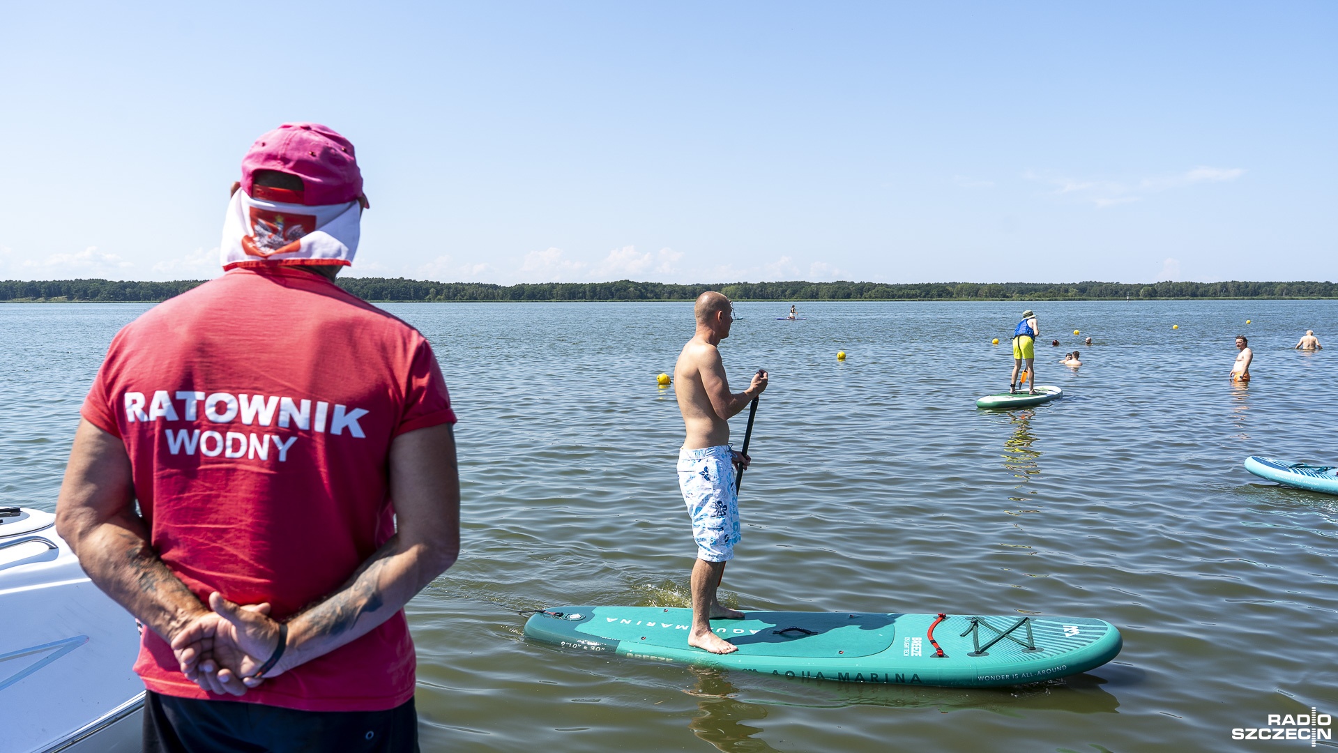- Nie jest to bardzo trudne - przekonywał Tomek, jeden z instruktorów. - Na początku sobie siadamy z kolanami szerokimi, później podnosimy, pozycja wyprostowana, ale na kolanach. I dopiero później, jak w tym momencie człowiek się dobrze czuje, mało się buja na tej wodzie, to wtedy dopiero może wstać. I to tak działa. Bardzo szybko człowiek przeskakuje z kolejnego etapu na kolejny etap.