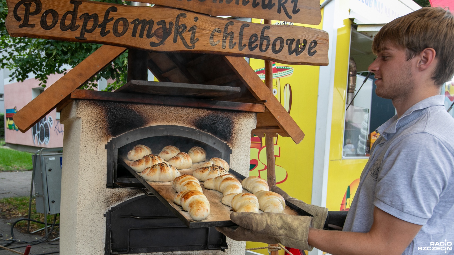 - Na bieżąco pieczemy, cały czas na bieżąco rogaliki idą. W środku co się znajdzie? Dżemik, czekoladka albo puste posypane czarnuszką - mówi wystawca.