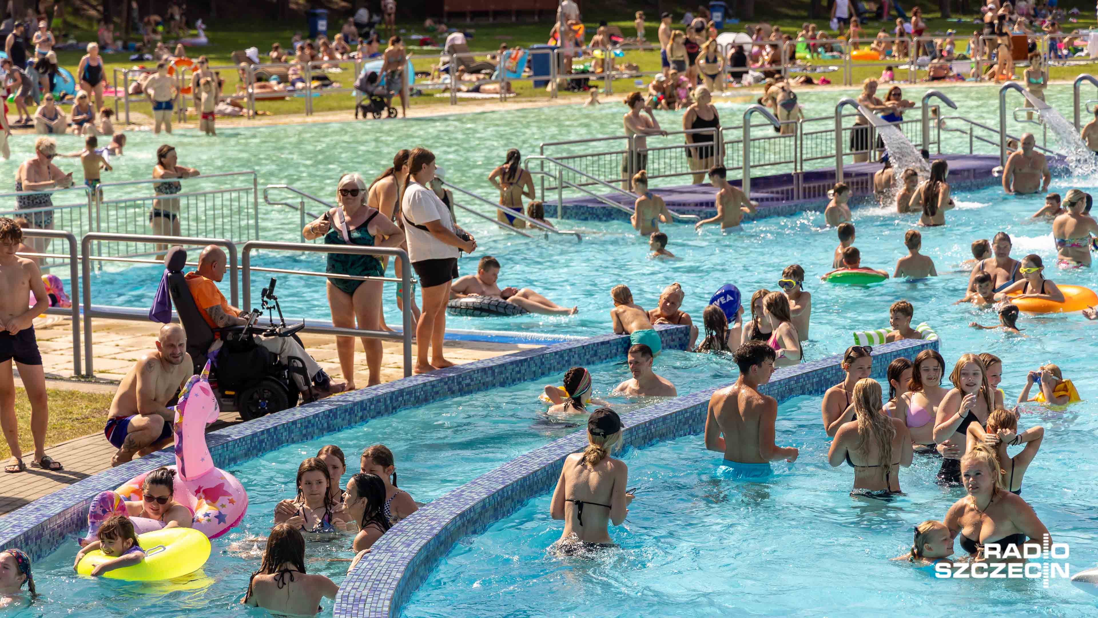 - Zjeżdżamy ze zjeżdżalni, pluskamy się. - Pierwszy raz tu jestem. Bardzo fajnie jest. - Super zabawa, super słońce i super ciepła woda. - Pływamy, korzystamy ze zjeżdżalni, a później jeszcze skorzystamy pewnie z jakichś zapiekanek albo lodów - mówią miłośnicy wody i słońca.