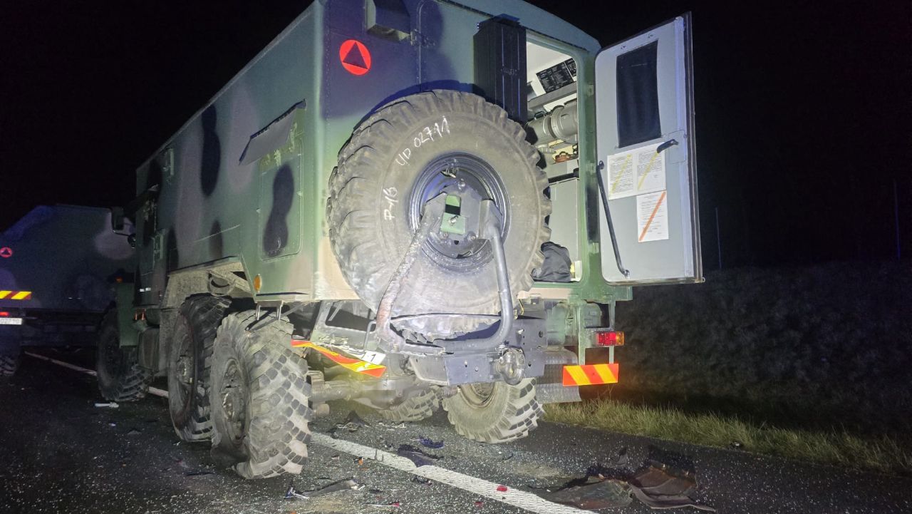 Jedna osoba poszkodowana w zderzeniu osobówki i pojazdu wojskowego na S6.