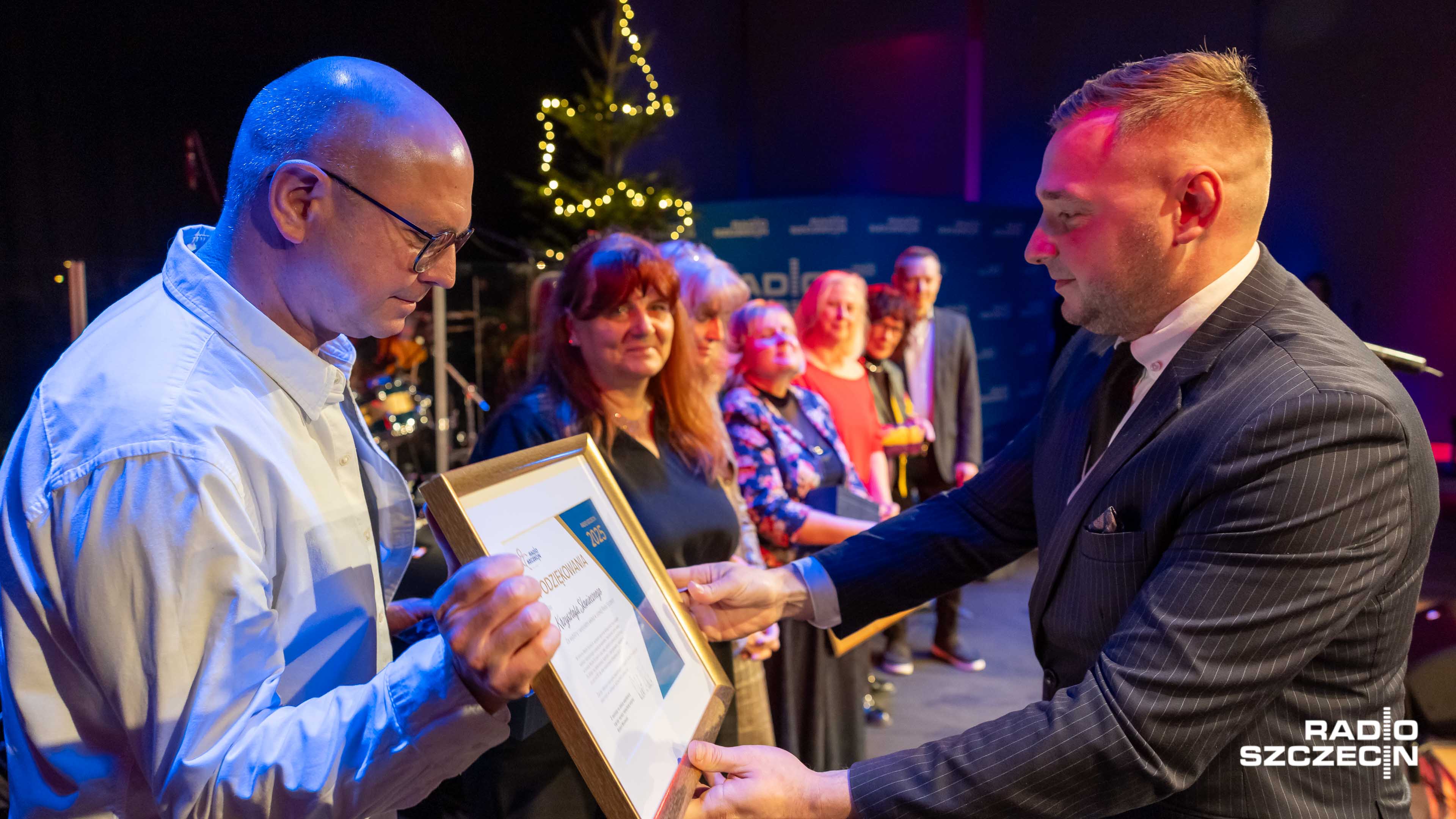 Podczas koncertu uhonorowano też wieloletnich pracowników Radia Szczecin. W dowód uznania za ich wkład w kulturę Pomorza Zachodniego, Zarząd Województwa Zachodniopomorskiego przyznał Złotą Odznakę Honorową Gryfa Pomorskiego m.in. Bogusławowi Lisowi – realizatorowi Radia Szczecin, który jest związany z naszą rozgłośnią od 58 lat.