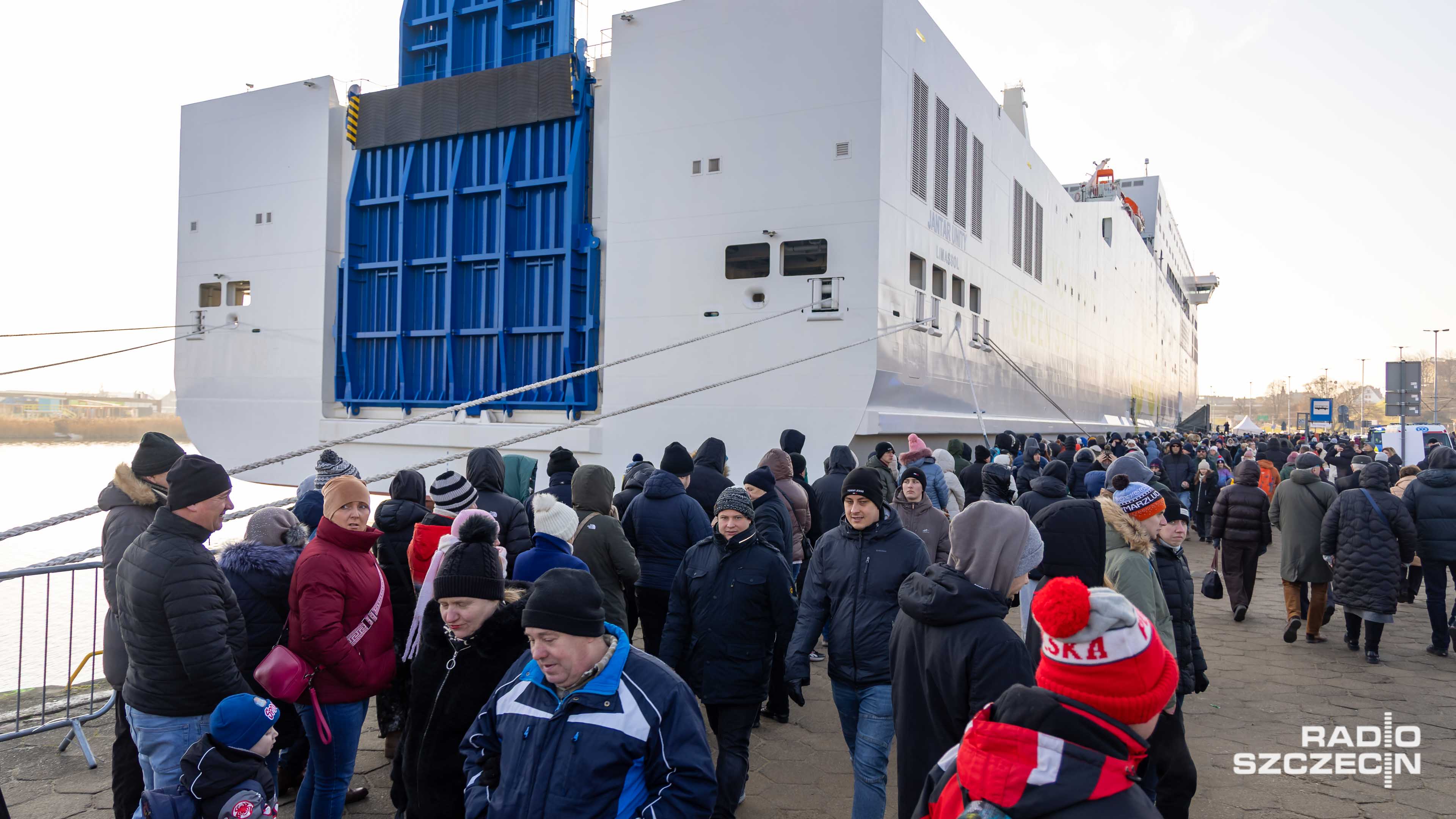 Ponad 3-godzinna kolejka na szczecińskich Wałach Chrobrego. Trwa zwiedzanie nowego promu "Jantar Unity".