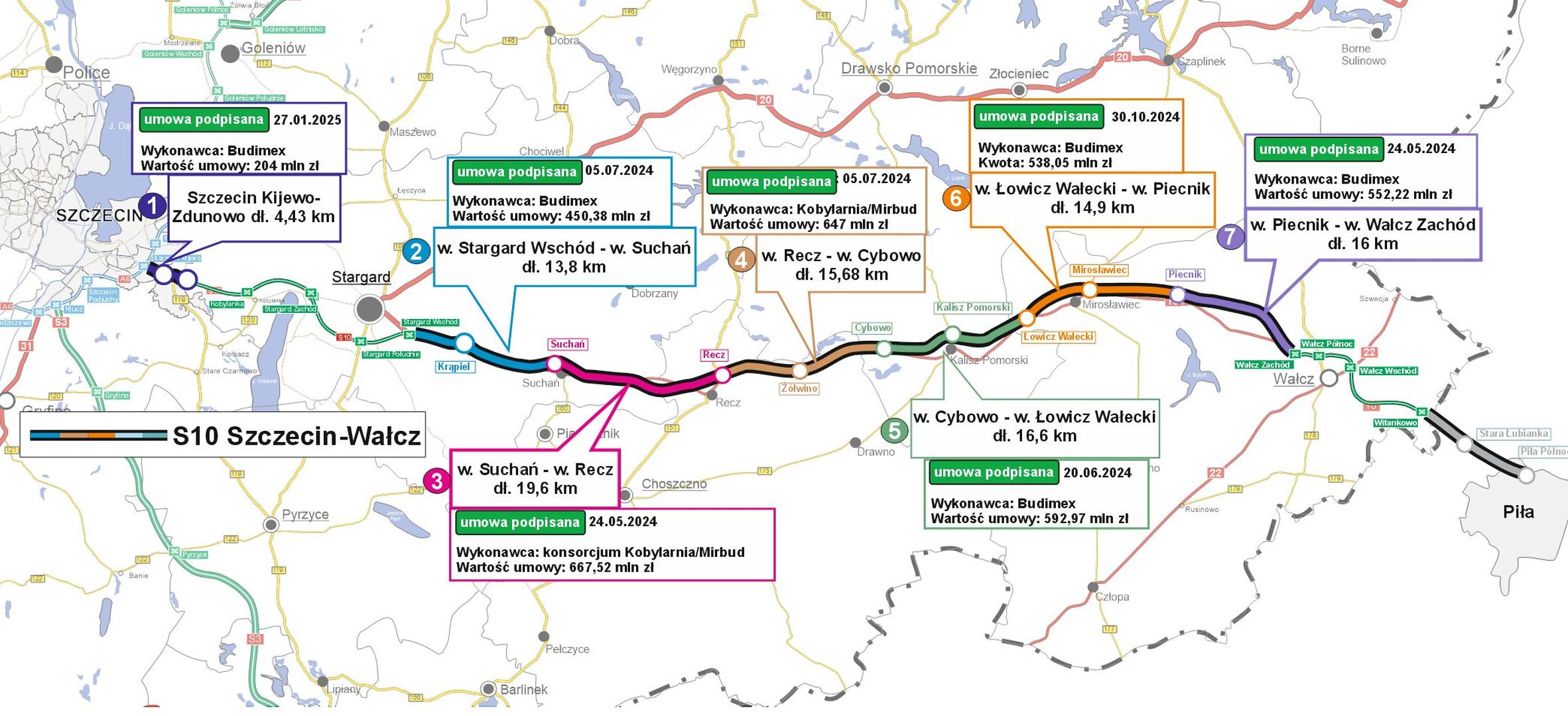 Do tej pory Generalna Dyrekcja Dróg Krajowych i Autostrad uzyskała pozwolenia na siedem odcinków S10 między Szczecinem a Wałczem - łącznie to sto kilometrów. Wszystko ma być gotowe do końca 2028 roku.
