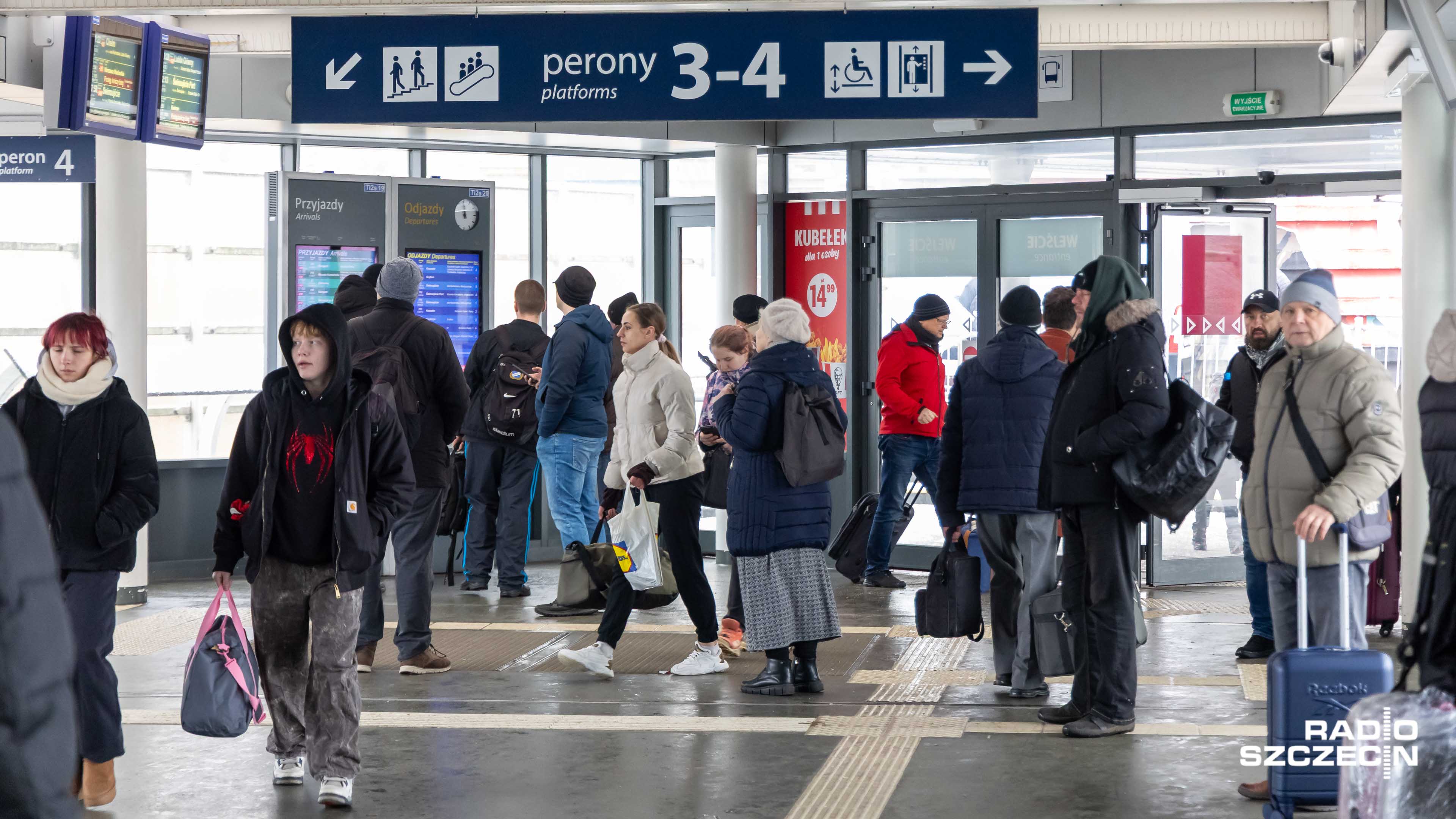 Ruch pociągów ze Szczecina nadal wstrzymany - informuje PKP Intercity. Powodem jest oblodzenie sieci trakcyjnej. Przewoźnik informuje, że pociągi mogą być mocno opóźnione lub odwołane. Na Dworcu Głównym w Szczecinie tłumy pasażerów czeka na swoje połączenia.