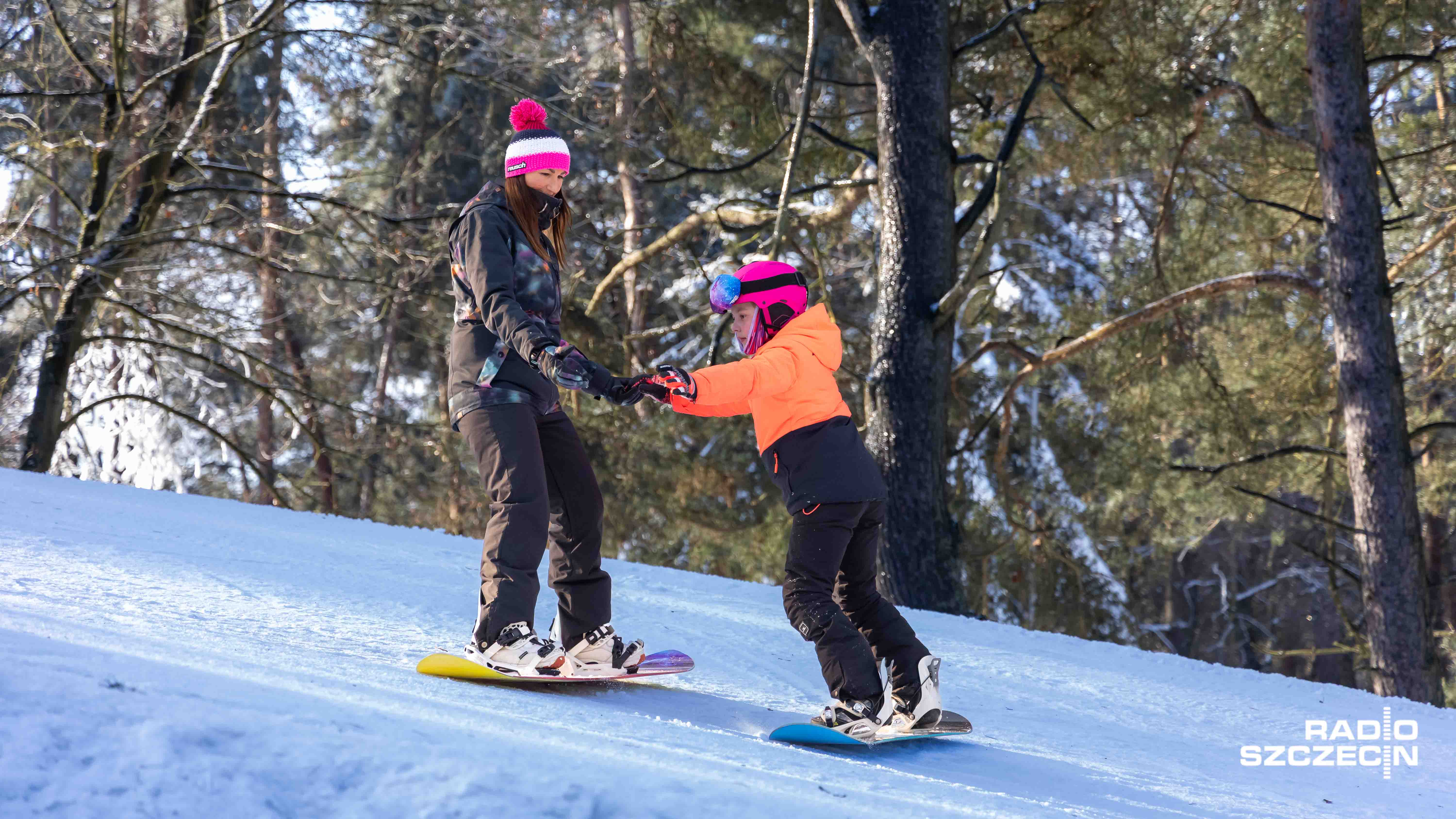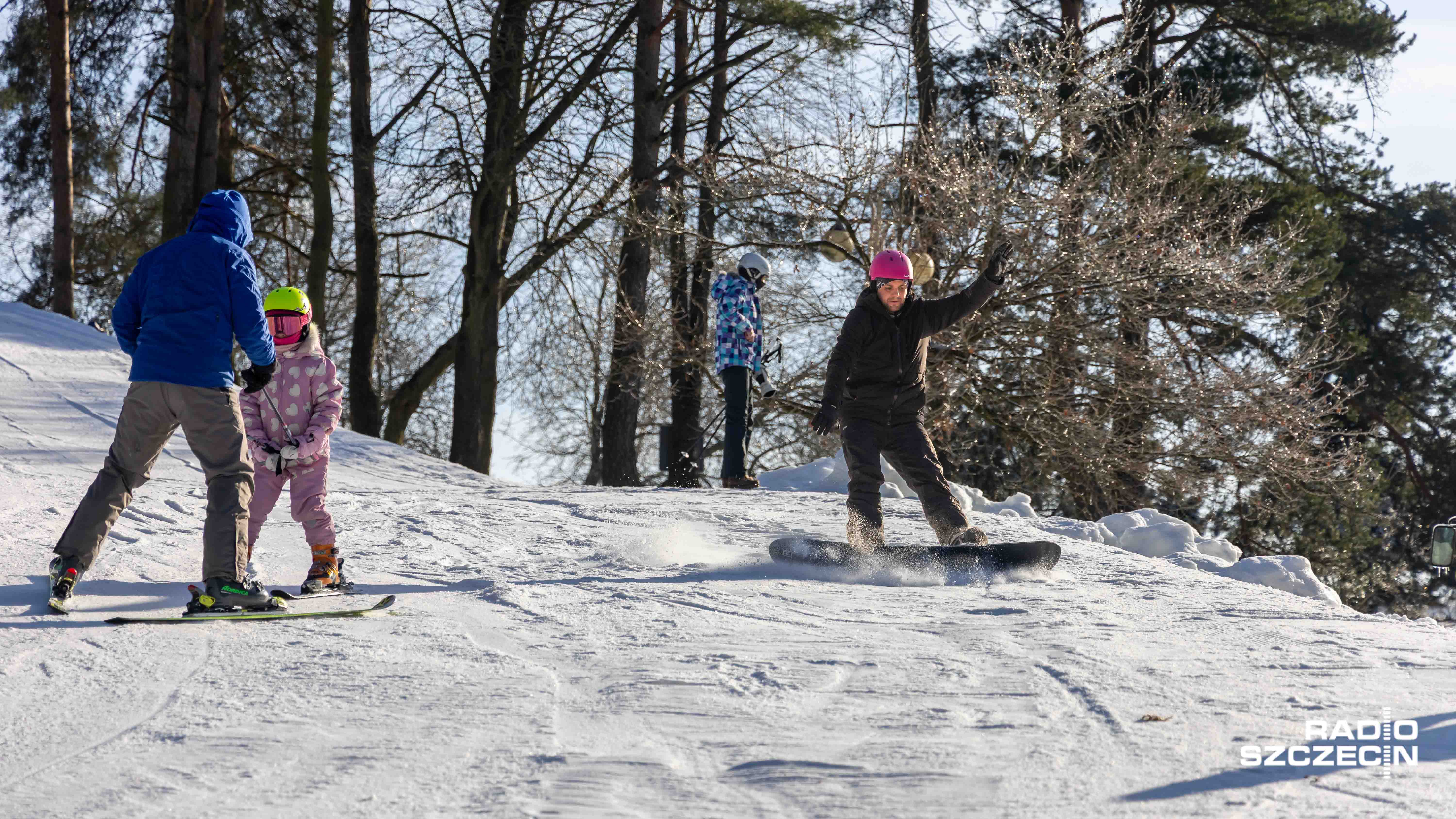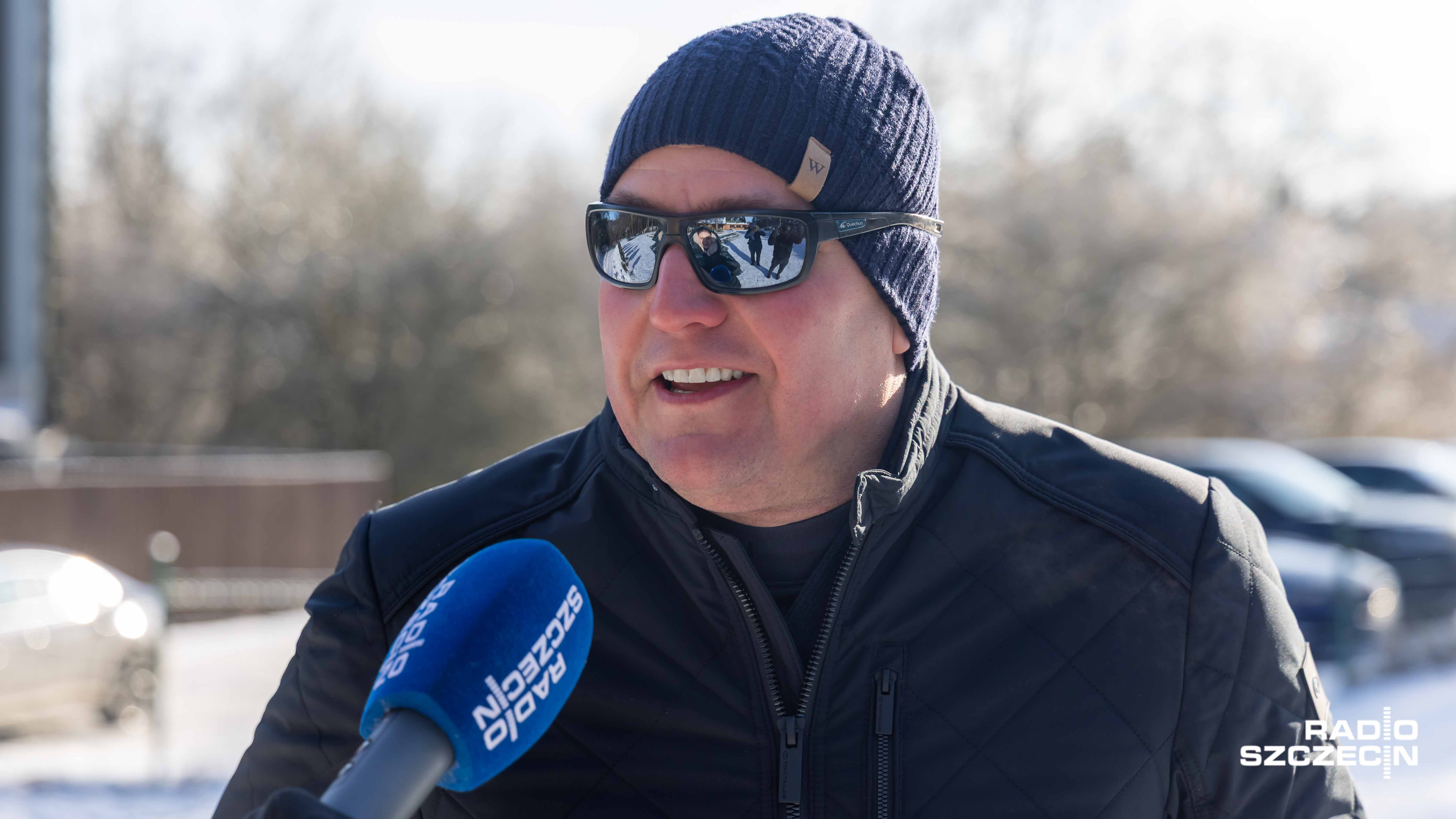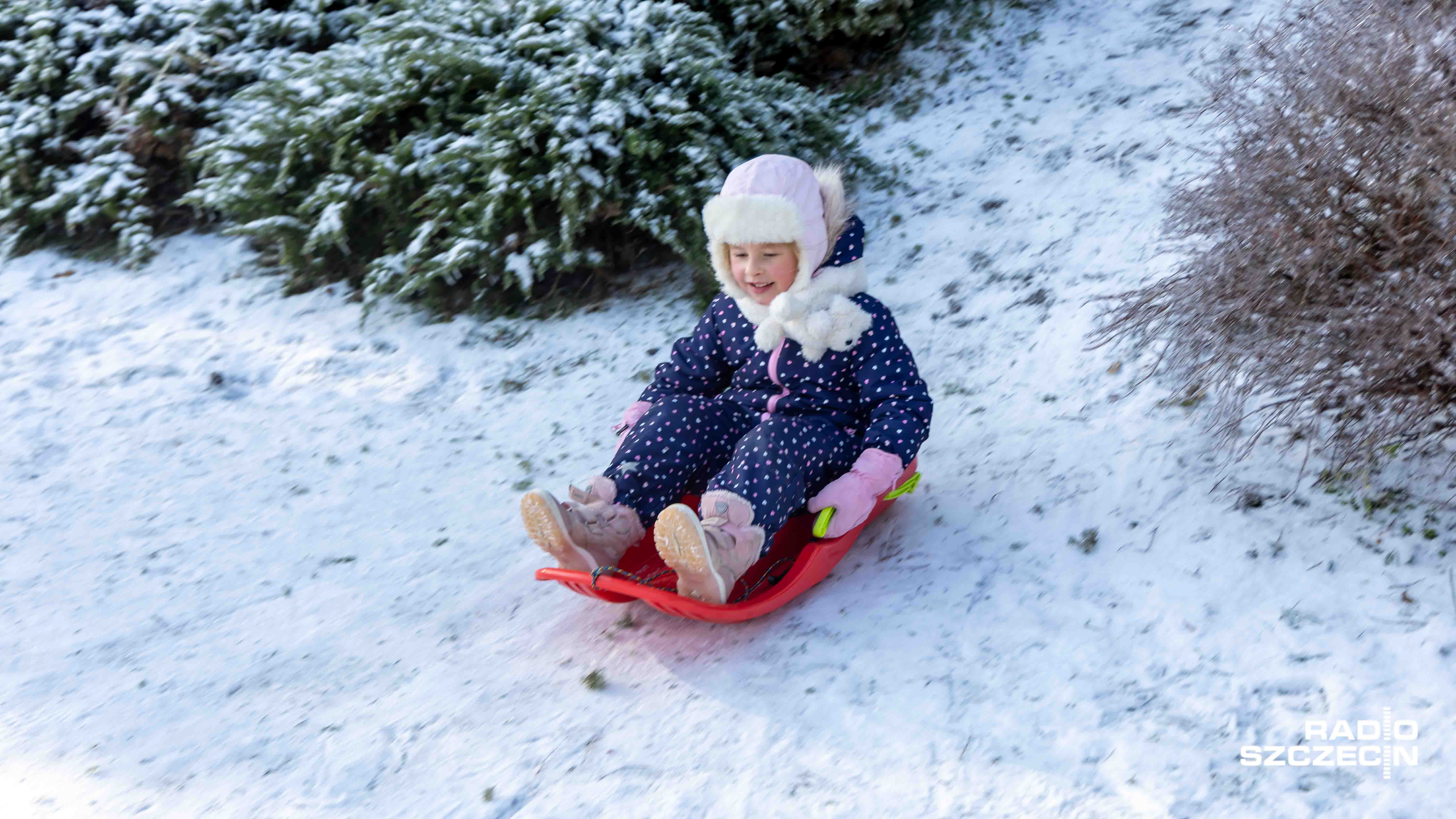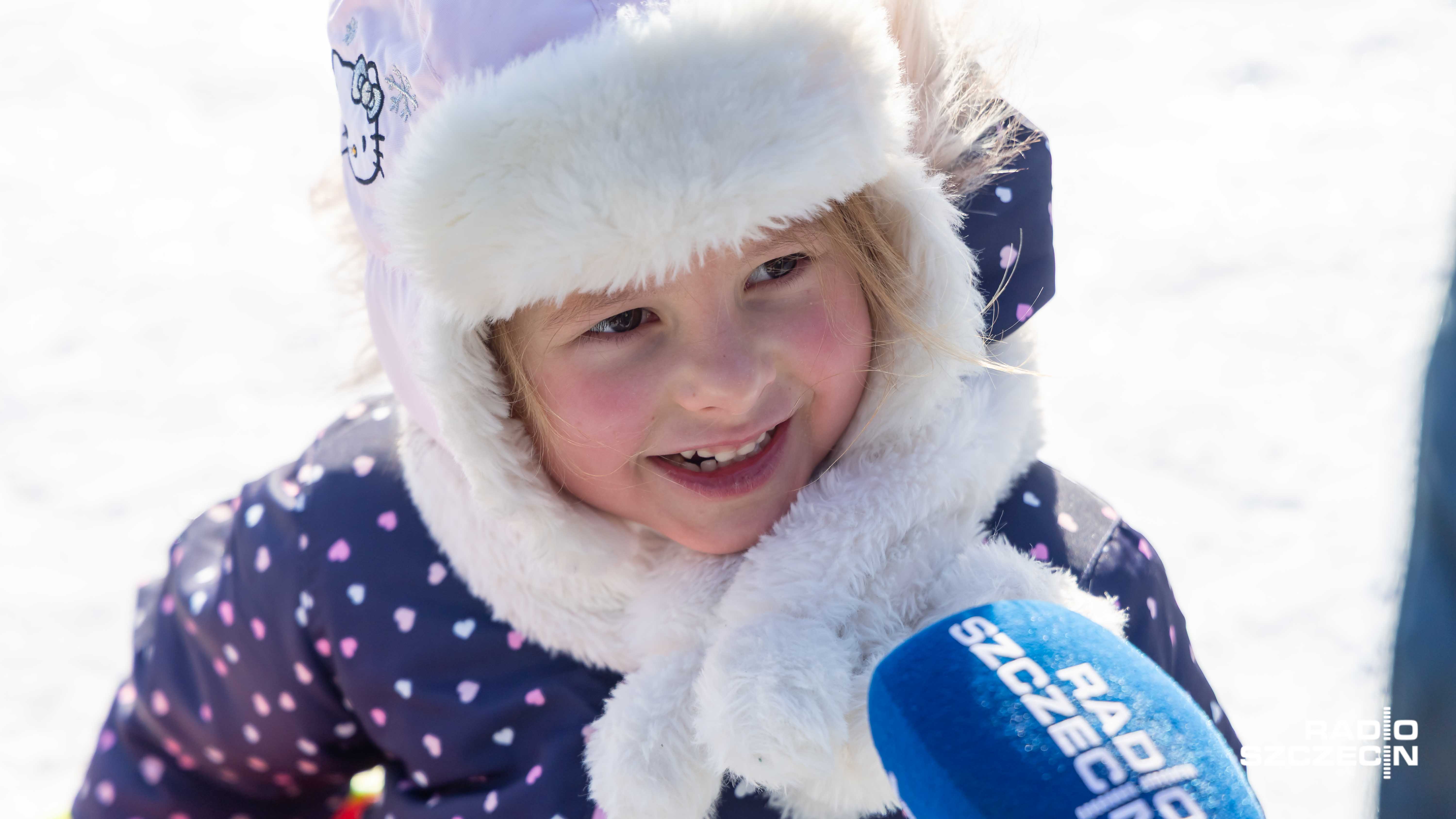 - Rękawiczki, spodnie zimowe, czapka i szalik... - Dzieci się bawią, a rodzice marzną, ale to dla córki, to jest poświęcenie. Jak widzi pani, nie jestem w ogóle przygotowany. Poza tym pracuję na zewnątrz, więc jestem przyzwyczajony do mrozu. - Jak się stanie w słoneczku i trochę się rusza, to myślę, że pogoda jest dzisiaj fantastyczna. - Jest zimno i można robić aniołki. - No, proszę zobaczyć: żona ubrała ją w jedną kurtkę, trzy warstwy pod spodem. Chyba z 20 minut wychodziliśmy z domu. - Jest fajnie i zimno i można zjeżdżać na pupie! - mówili najmłodsi i nieco starsi Szczecinianie.