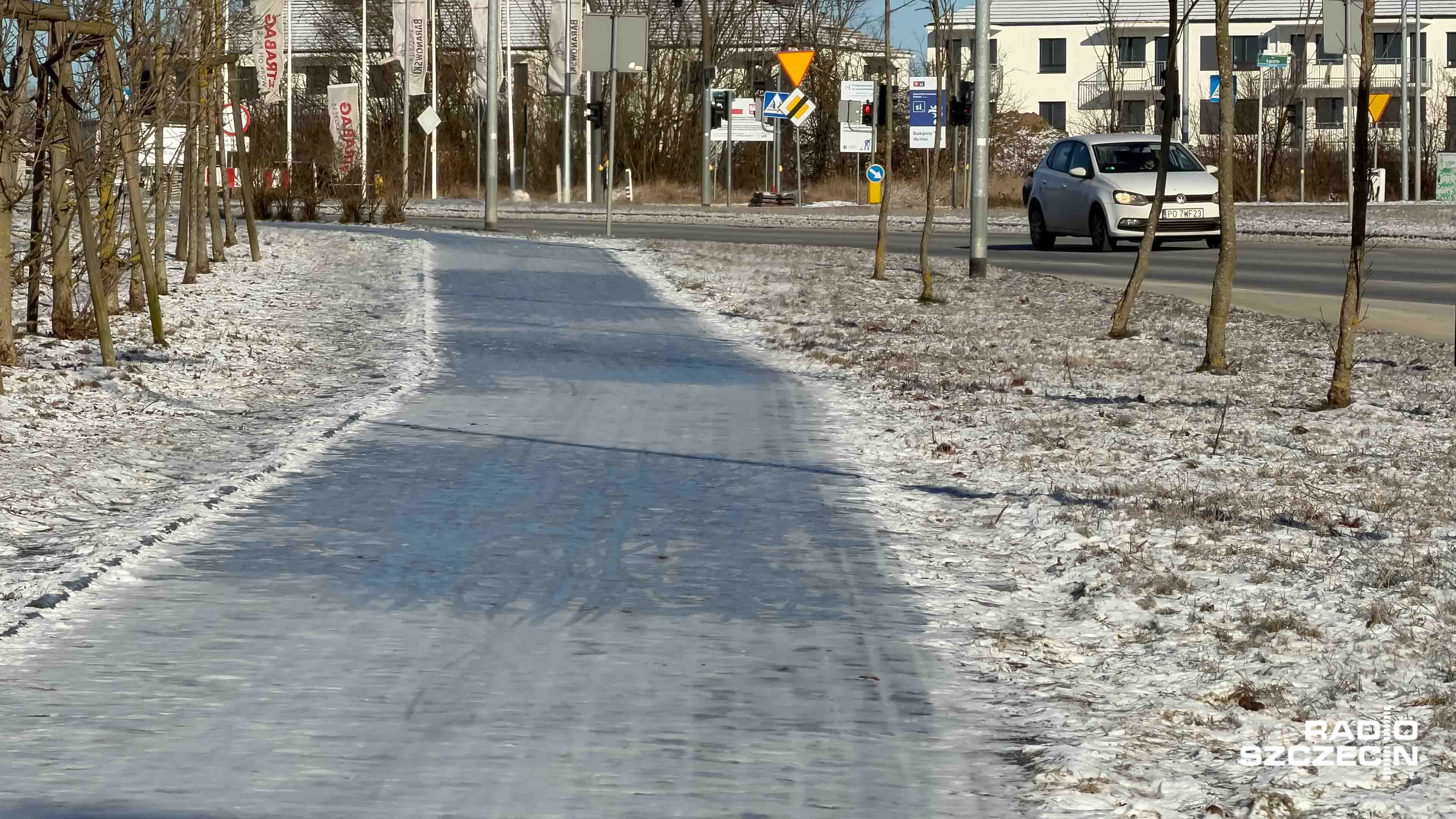 - Przyjechałem samochodem, ale ten kawałeczek tutaj jakoś daje radę, ale rzeczywiście jest wszystko oblodzone, więc mogłoby to się zmienić. Szklanka dalej i podobno na czwartek zapowiadają kolejną szklankę, więc czekamy co będzie w czwartek. - Myślę, że jest lepiej niż było, ale są takie odcinki o tamtym placyk. Tam niestety jest bardzo ślisko. Trzeba uważać cały czas. - Jest tak fajnie, lodowato, że można na łyżach jeździć. Powinni po prostu piaskiem posypać - mówią Szczecinianie.