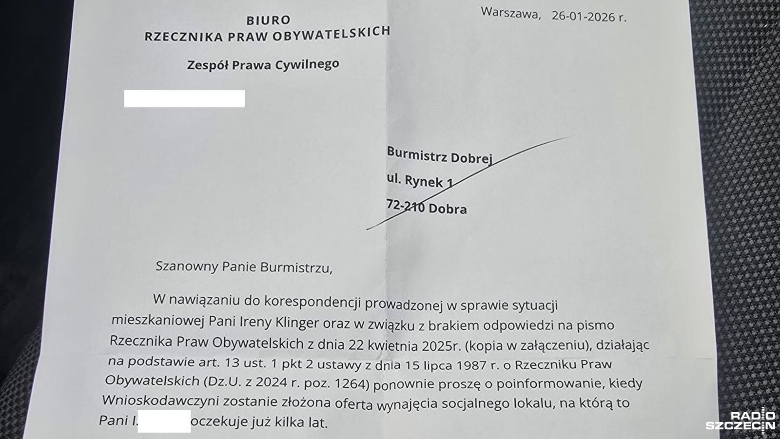 Z powodu zadłużenia pani Ireny, gmina uzyskała w 2021 roku wyrok eksmisyjny, jednak sąd nakazał przyznać jej lokal socjalny. Kobieta poprosiła też o pomoc Rzecznika Praw Obywatelskich. Ten wnioskował do gminy o zamianę obecnego mieszkania.