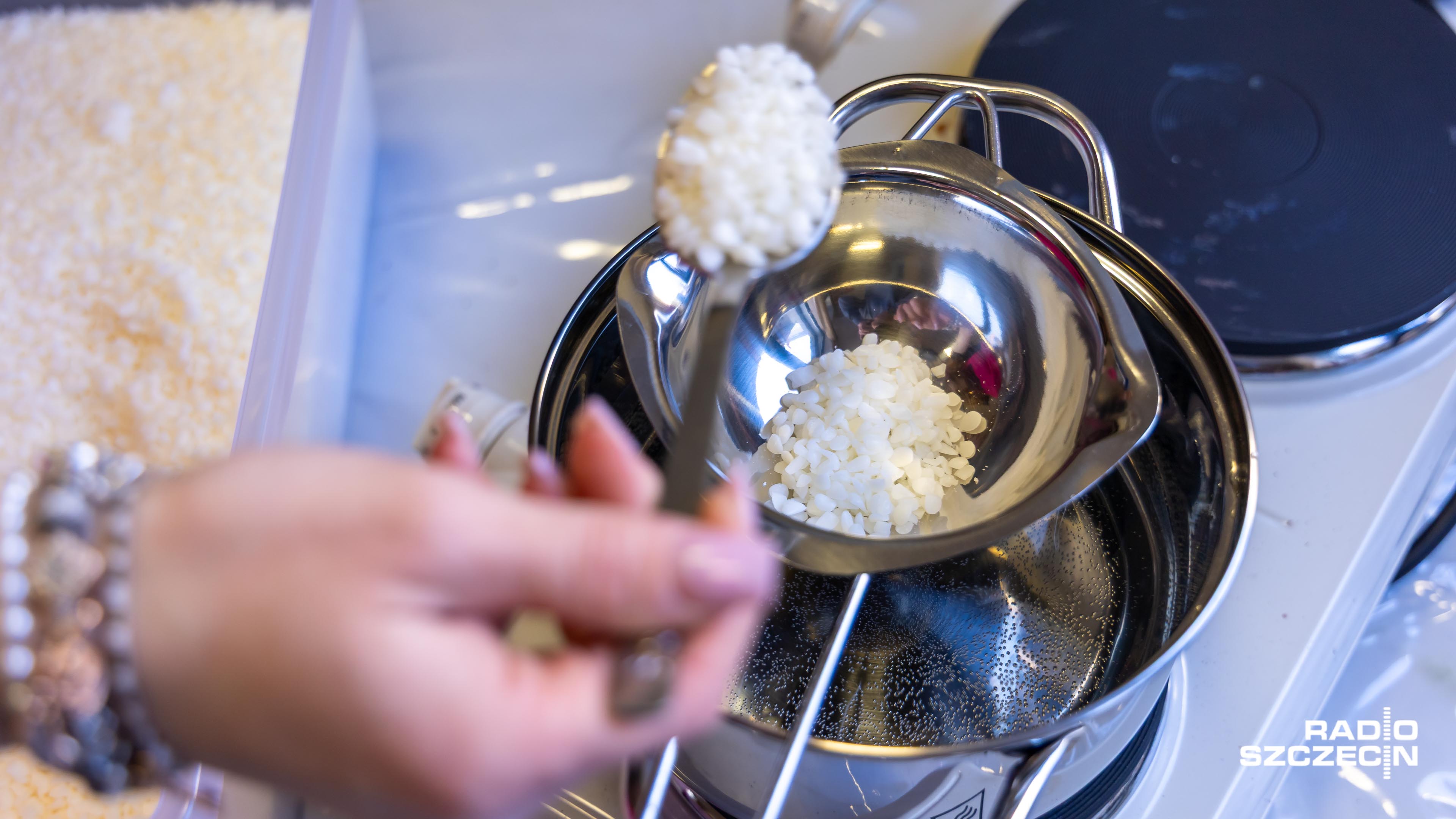 - Teraz wrzucam wosk sojowy właśnie do roztopienia na kąpieli wodnej. Robimy świece sojowe, ze względu na to, że to jest bardziej zdrowa, ekologiczna wersja świec, a o to tutaj właśnie chodzi. Mamy też różne elementy dekoracyjne. Wypuścimy trochę wodze fantazji - mówi Weronika Zielińska, właścicielka Vibe Corner.