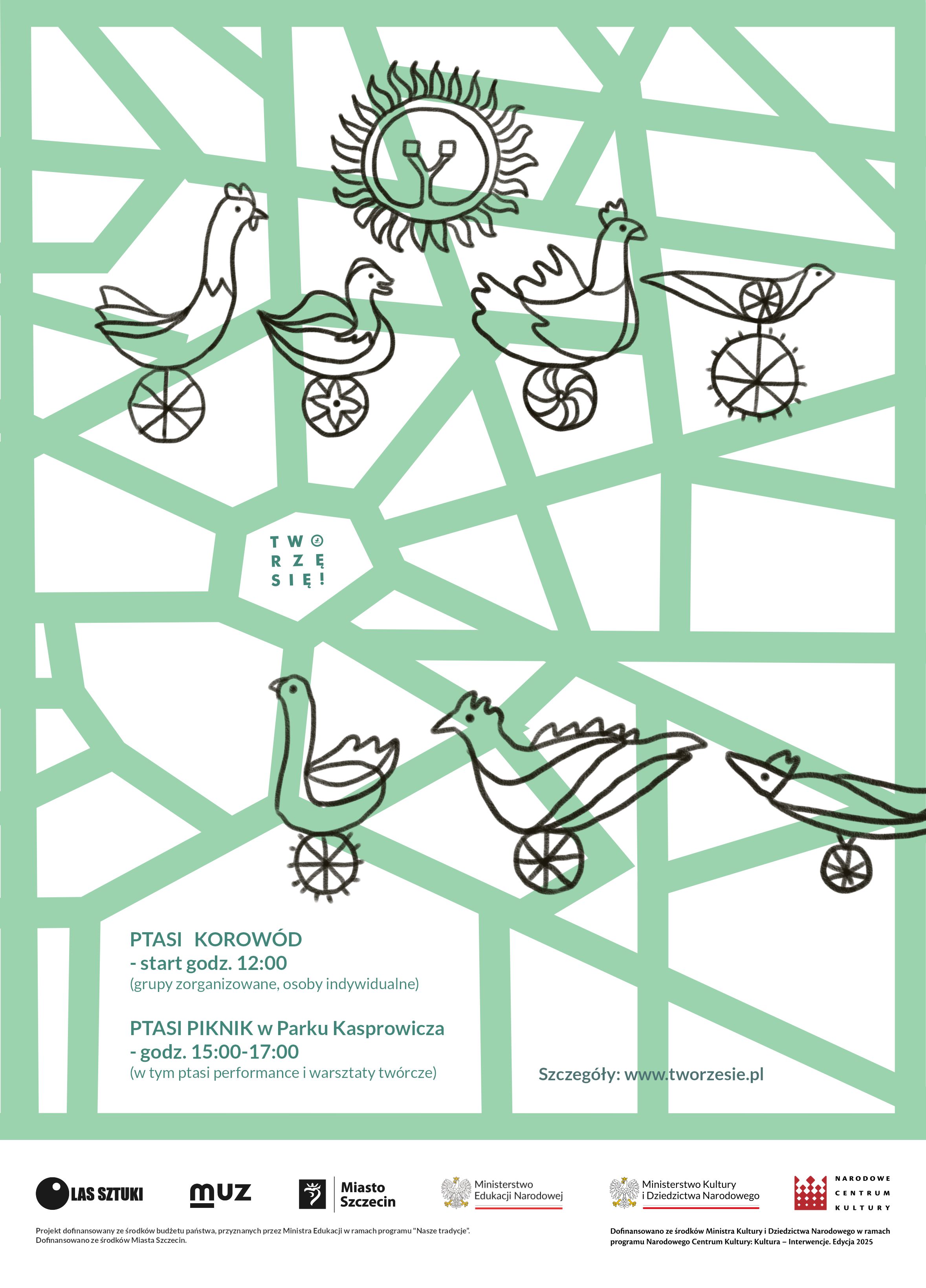 Kolejnym projektem Galerii "Tworzę się" jest "Opowiem ci Szczecin". To cykl działań animacyjnych, warsztatowych i artystycznych, angażujących mieszkańców Szczecina oraz uczniów i uczennice lokalnych szkół w twórcze obchody 80. urodzin miasta. Celem inicjatywy jest przybliżenie kultury i dziedzictwa regionu w sposób ciekawy i nowoczesny. Najbliższe działania już 19 września. Fundacja Las Sztuki zaprasza na PTASI KOROWÓD i PTASI PERFORMANCE do Parku Kasprowicza.