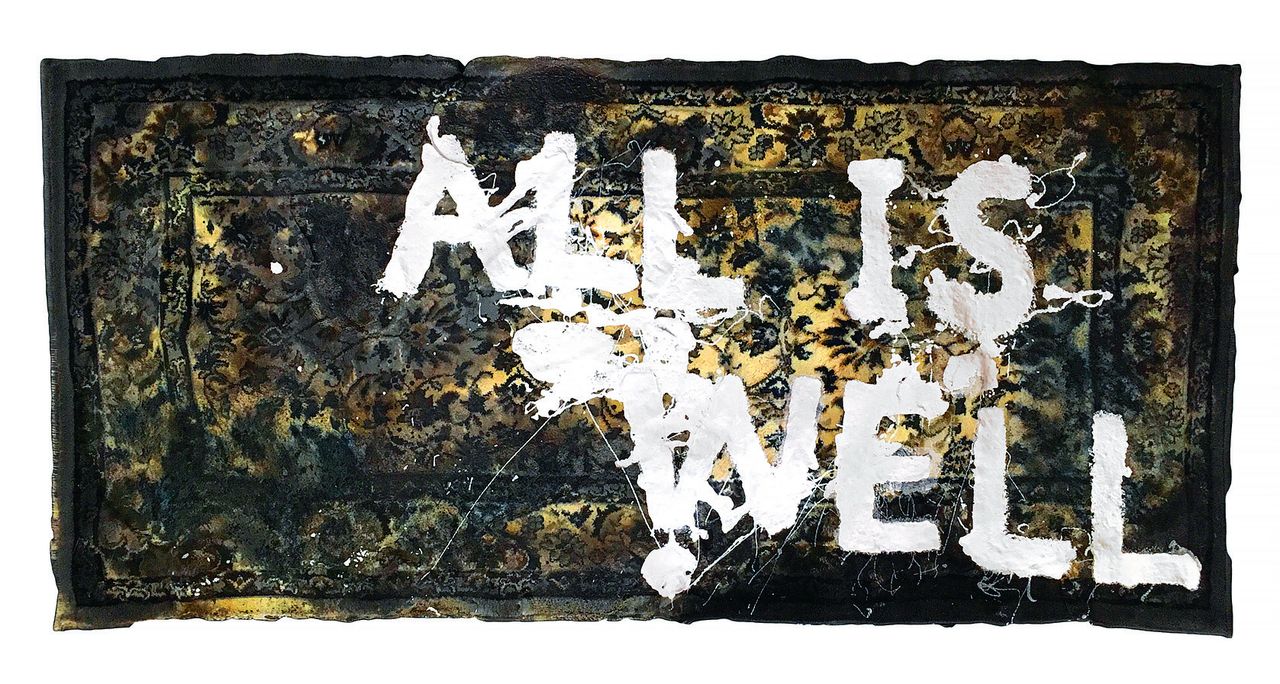 Obraz wykonany na okopconym dywanie, noszącym ślady pożaru, łączy osobiste doświadczenie artysty z uniwersalną metaforą kryzysu i wyparcia. Tekstowy komunikat „All is Well” nabiera ironicznego i gorzkiego znaczenia, odnosząc się zarówno do mechanizmów psychologicznych, jak i globalnych napięć: wojennych, klimatycznych i społecznych. Praca, prezentowana w 2024 roku na wystawie indywidualnej artysty w Muzeum Narodowym w Szczecinie, wprowadza do kolekcji silny wątek egzystencjalny i autobiograficzny.