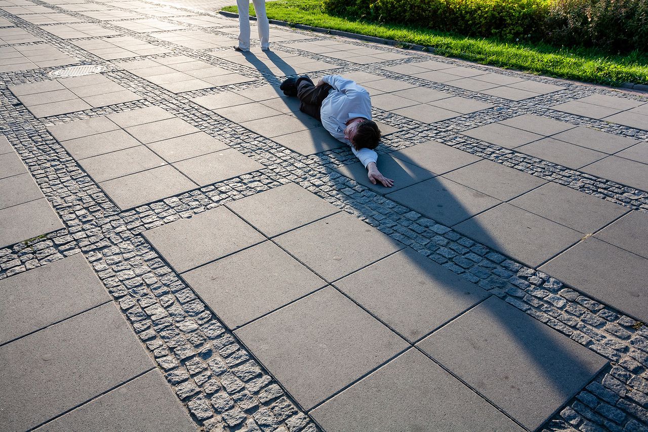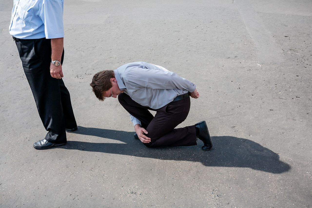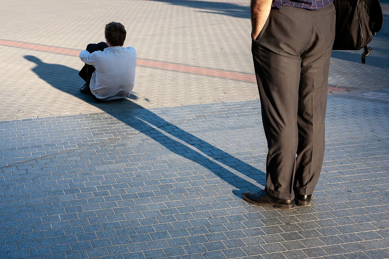 Fotograficzny cykl z 2008 roku oparty jest na prostym, lecz wieloznacznym geście performatywnym – przebywaniu w cieniu przypadkowo spotkanych mężczyzn. Praca podejmuje refleksję nad relacjami władzy, zależności, męskości i figurą autorytetu, wpisując się w szerszy nurt sztuki konceptualnej eksplorującej relacje społeczne. Zakup dzieła artysty związanego z Akademią Sztuki w Szczecinie wzmacnia regionalny wymiar kolekcji oraz jej potencjał interpretacyjny.