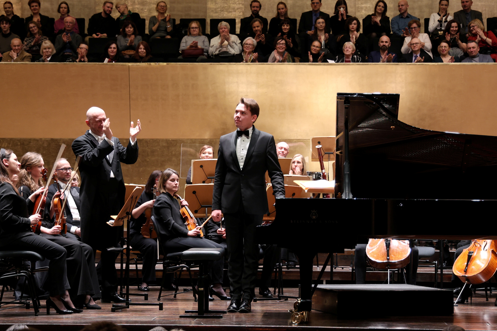 Brawa na stojąco zwieńczone dwoma bisami dla solisty, dyrygenta i orkiestry. W Złotej Sali Filharmonii im. Mieczysława Karłowicza zabrzmiały dzieła nie tylko gigantów muzyki doby klasycyzmu w interpretacji szczecińskich symfoników pod batutą doskonałego Michała Klauzy oraz wybitnego, 25-letniego pianisty Mateusza Krzyżowskiego.
