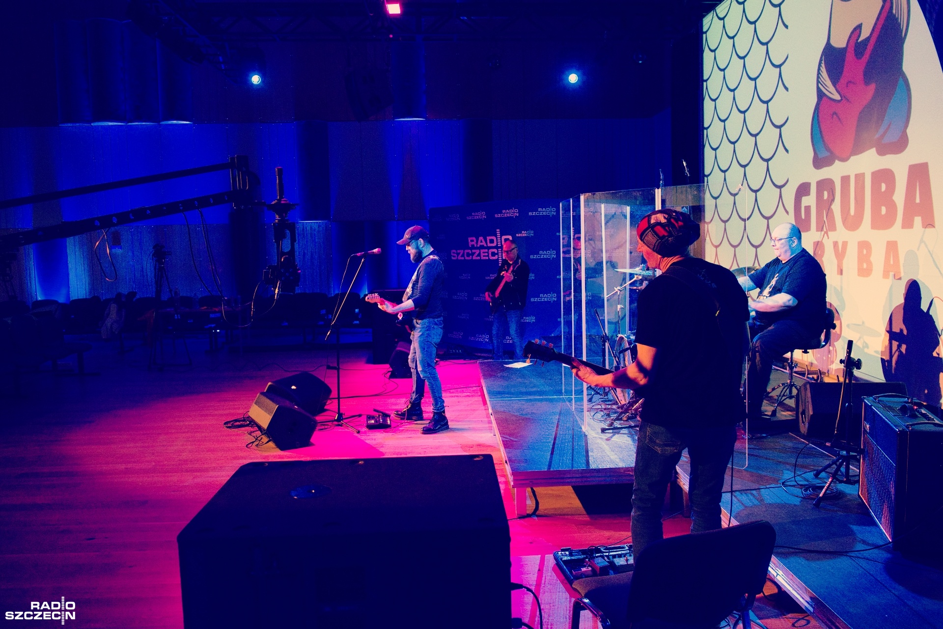 Zespół Gruba Ryba powstał trzy lata temu i obecnie działa w składzie: Robert Wawryniuk to gitara i śpiew, Marek Radkowiak gra na perkusji, Paweł Zamuła na gitarze oraz Michał Kłos na gitarze basowej. Panowie do swojej działalności podchodzą dość swobodnie, ale jakieś plany także posiadają. Zasadniczo wolą występy "na żywo" niż pracę w studiu. Warto zaglądać na ich profil, bo może będą grać gdzieś za rogiem. W planach mają także powrót do "Bez sessions" czyli otwartych muzycznych spotkań, w których trakcie mieszają się pokolenia. M.in. o tym opowiadali w audycji "Schody do nieba".