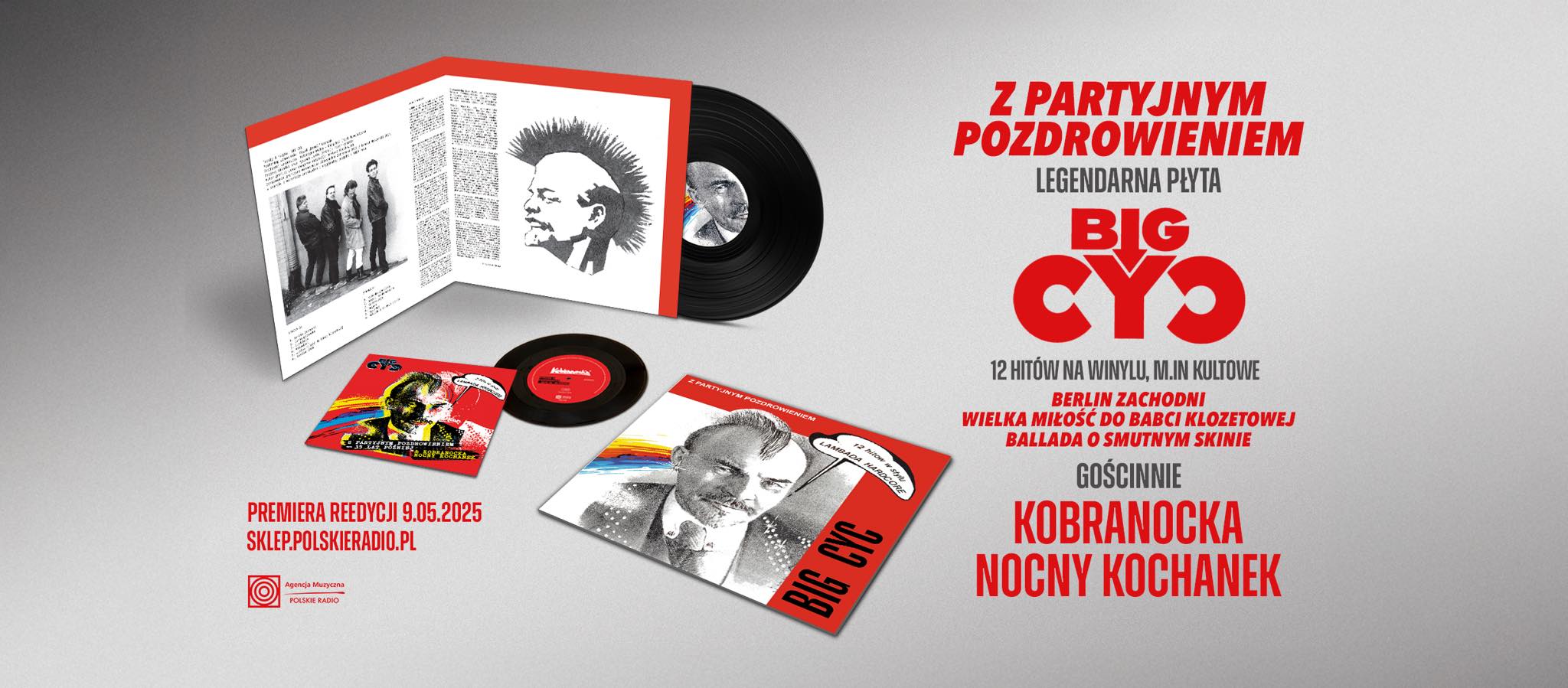 Po 35-latach reedycja kultowego albumu pt. „Z partyjnym pozdrowieniem”. Agencja Muzyczna Polskiego Radia wyda wyjątkową, bogato ilustrowaną i wspaniale brzmiącą winylową reedycję pierwszej płyty legendarnego zespołu Big Cyc. Premiera 9 maja 2025.