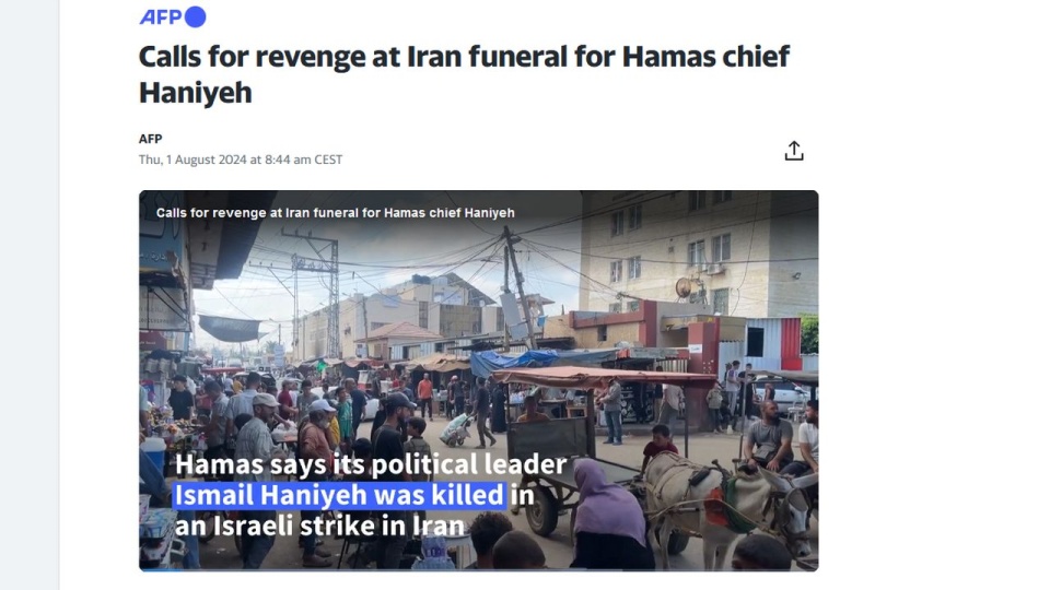 Hanije zginął podczas wizyty w irańskiej stolicy, gdzie przebywał z okazji zaprzysiężenia nowego prezydenta Iranu Masuda Pezeszkiana.