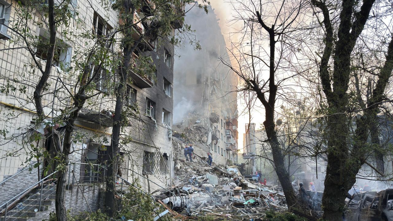 W Kijowie do zniszczeń doszło w co najmniej kilkunastu lokacjach. Ofiar może być więcej, gdyż trwa akcja ratunkowa w zawalonym bloku mieszkalnym. Nad miastem rano unoszą się kłęby dymu.